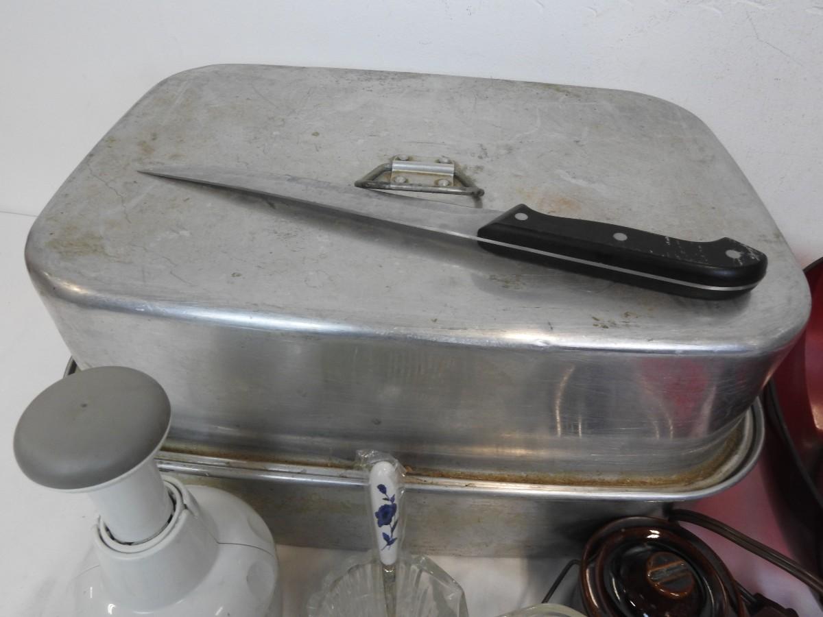 Kitchen Lot: Roasting Pan, Tupperware Bowl, Pampered Chef Chopper, Mixer-Works