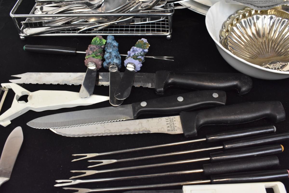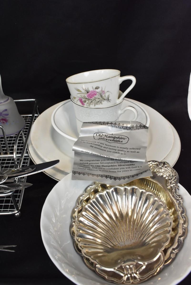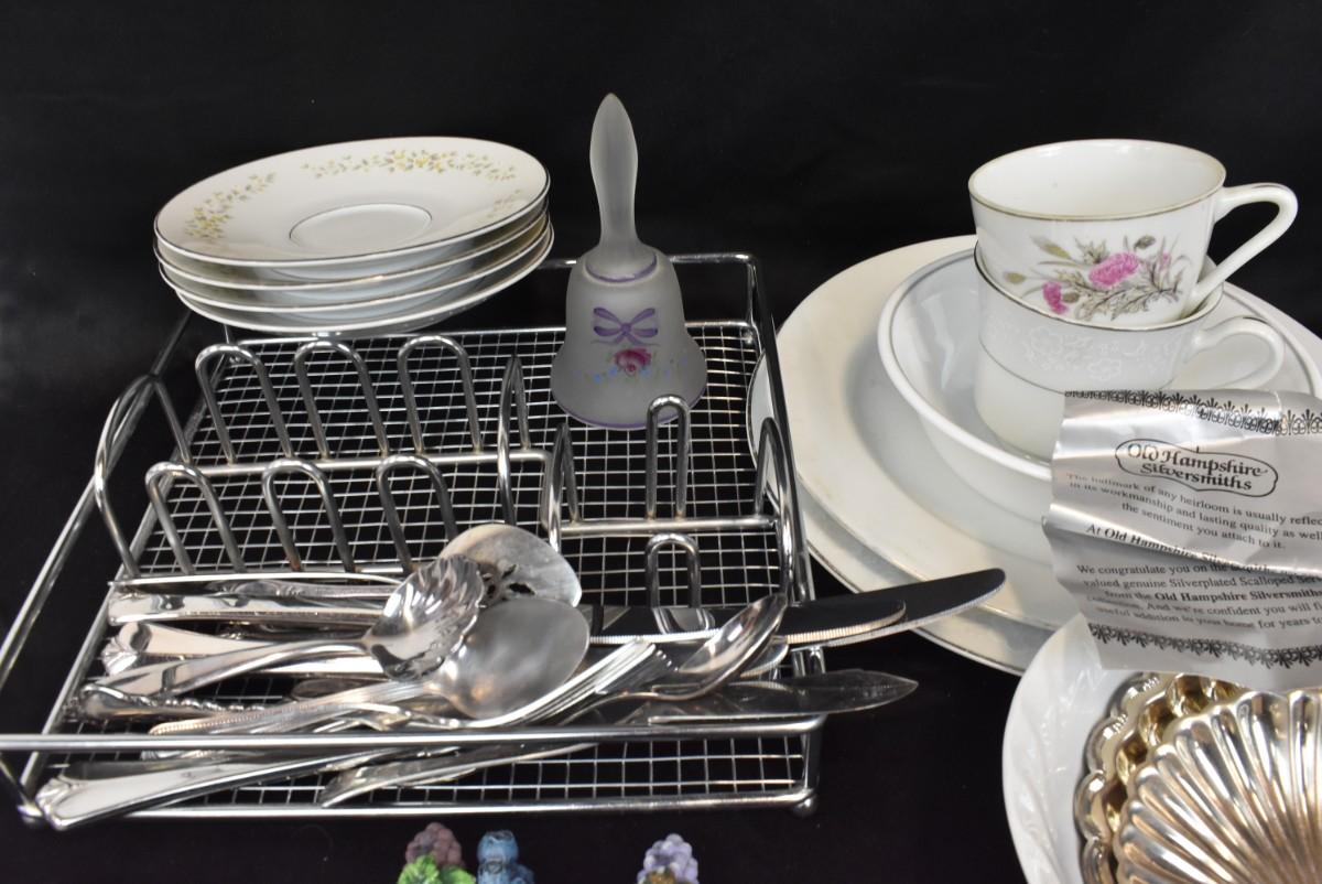 Kitchen Lot: Silverware, Silverware Holder, Glass Plates and Bowls, New Hampshire Silversmiths, Cutlery