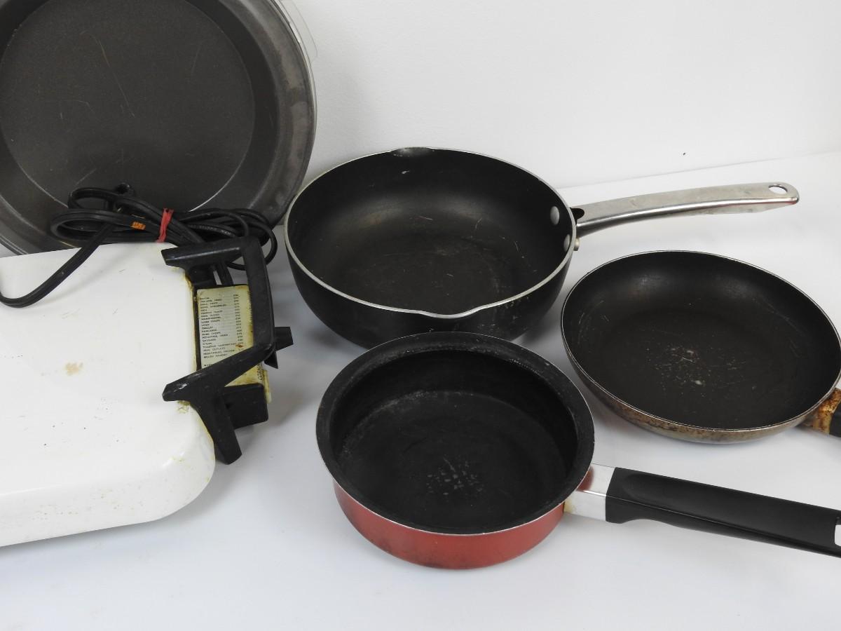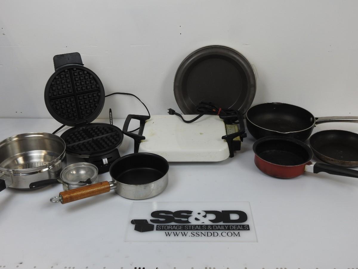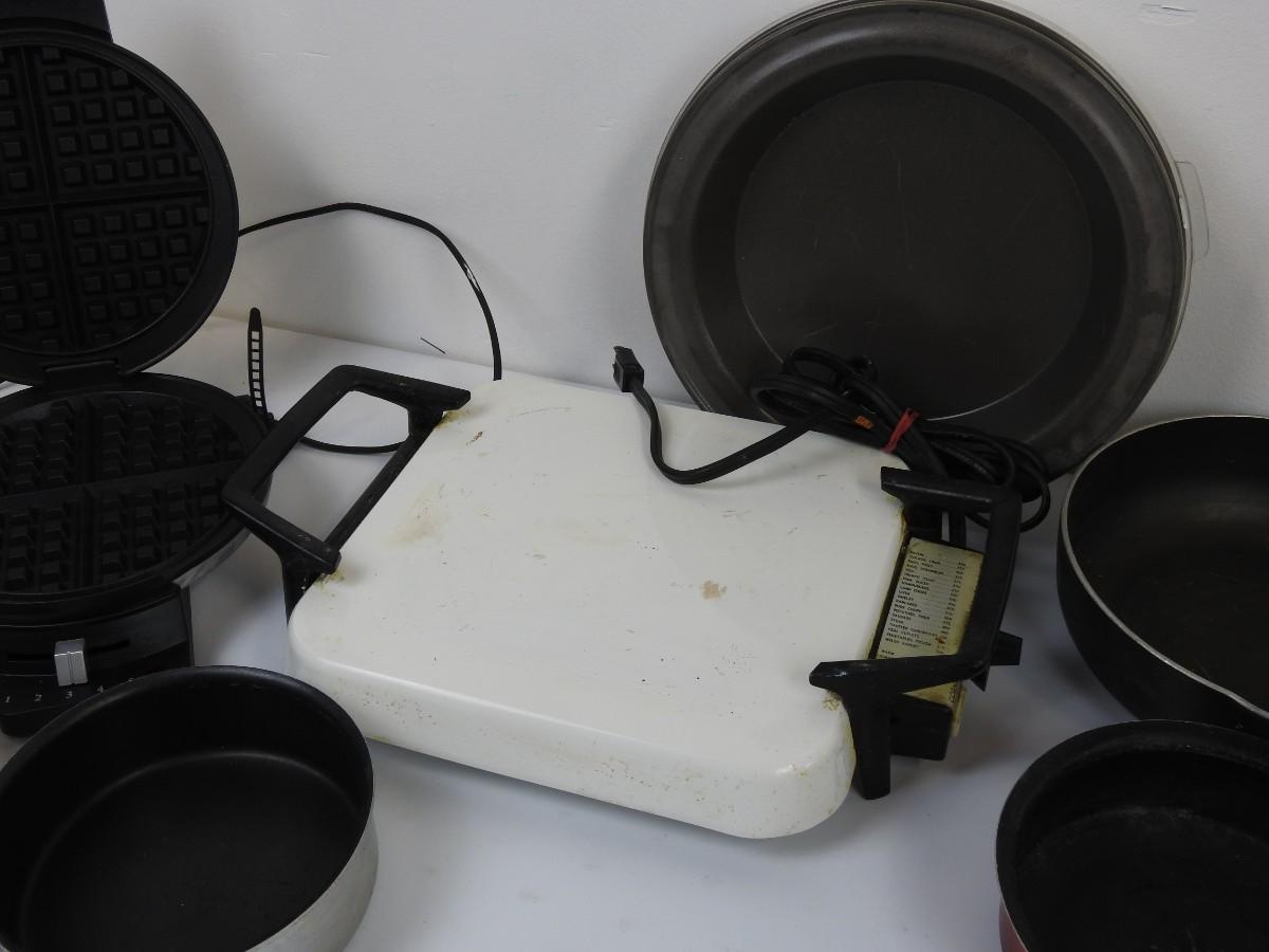 Kitchen Lot: Waffle Iron, Electronic Skillet, Pans, etc