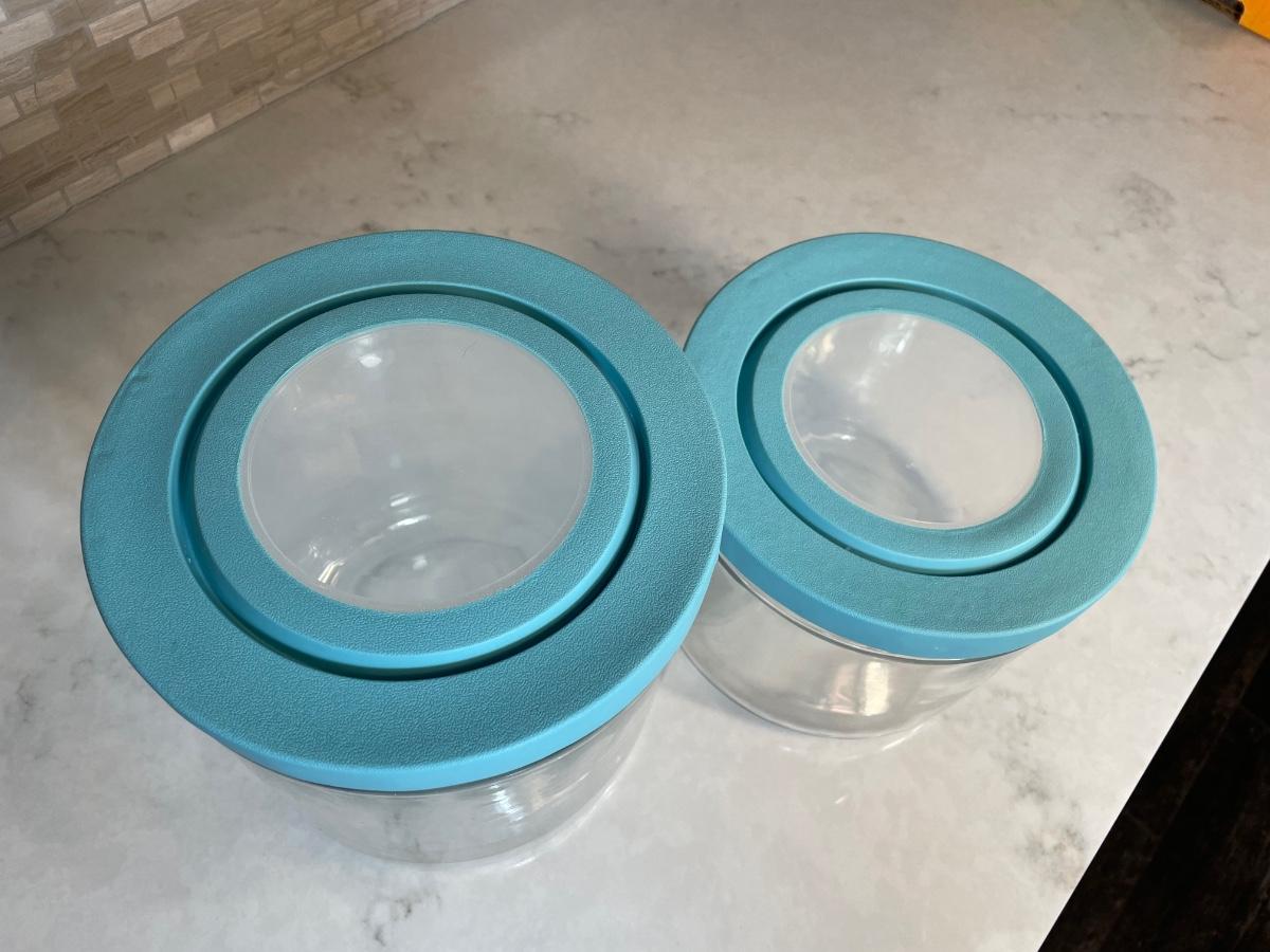 Pair of air-tight glass canisters with rubber lids