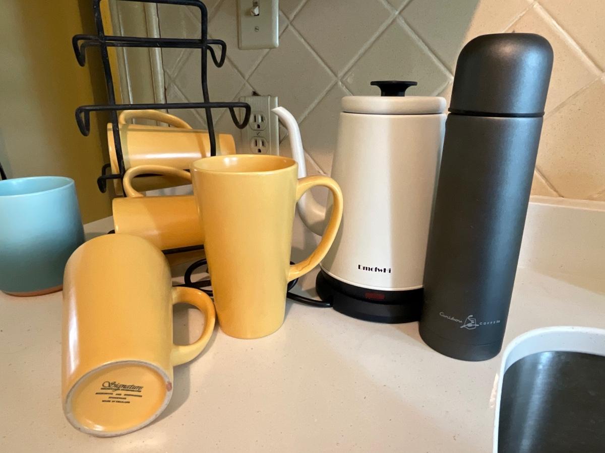 Kitchen mugs, Hot water pot, caribou thermos