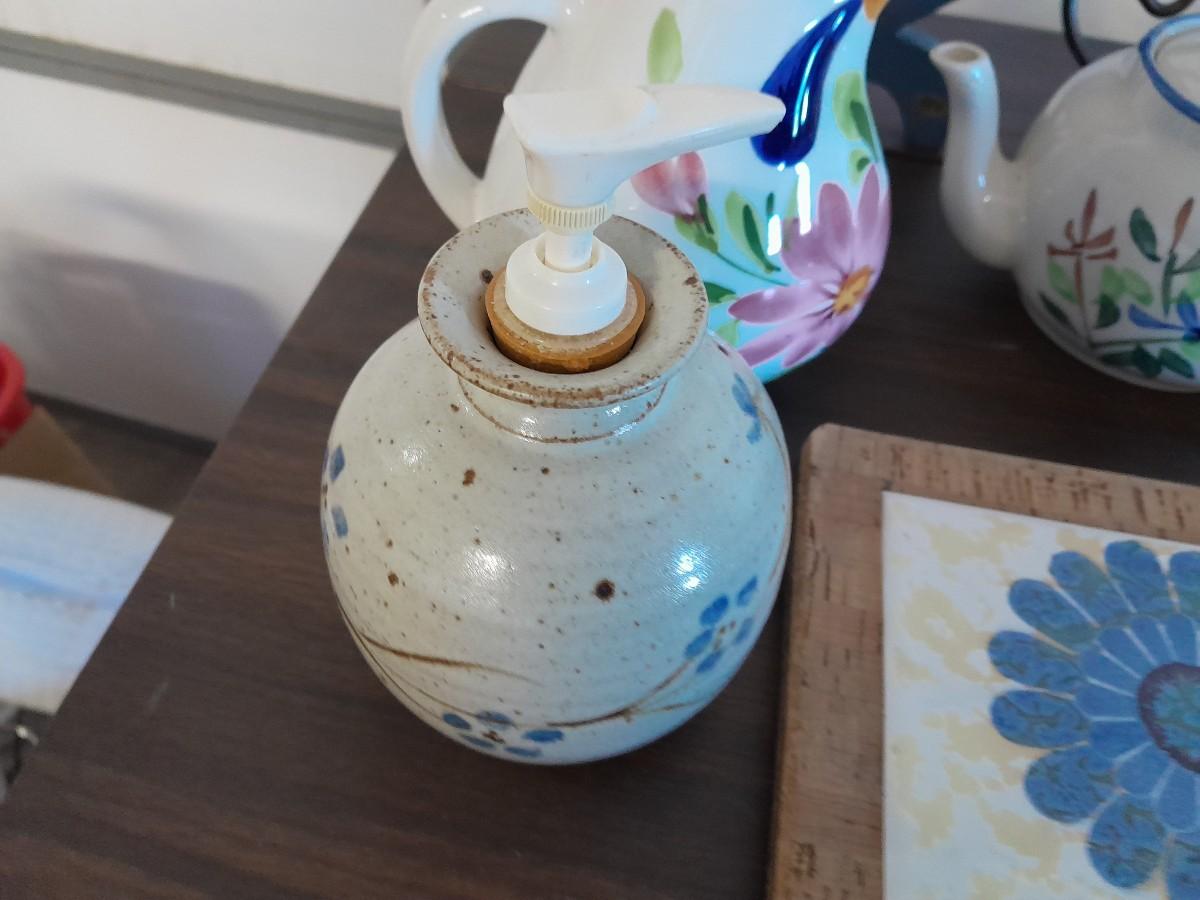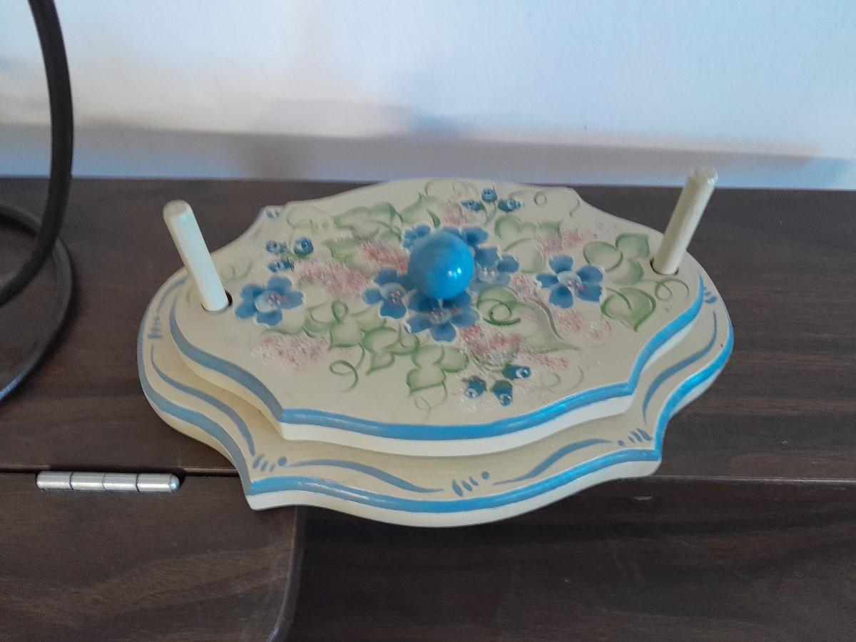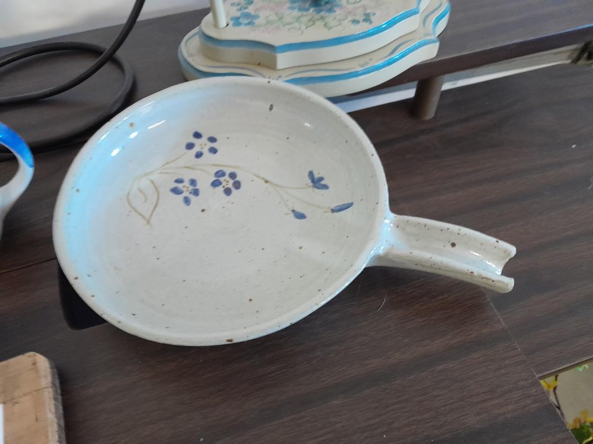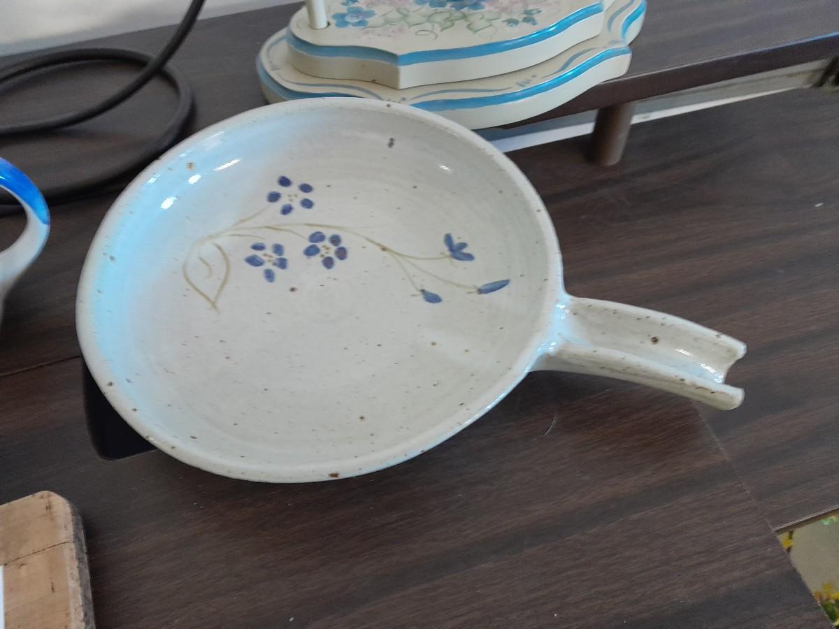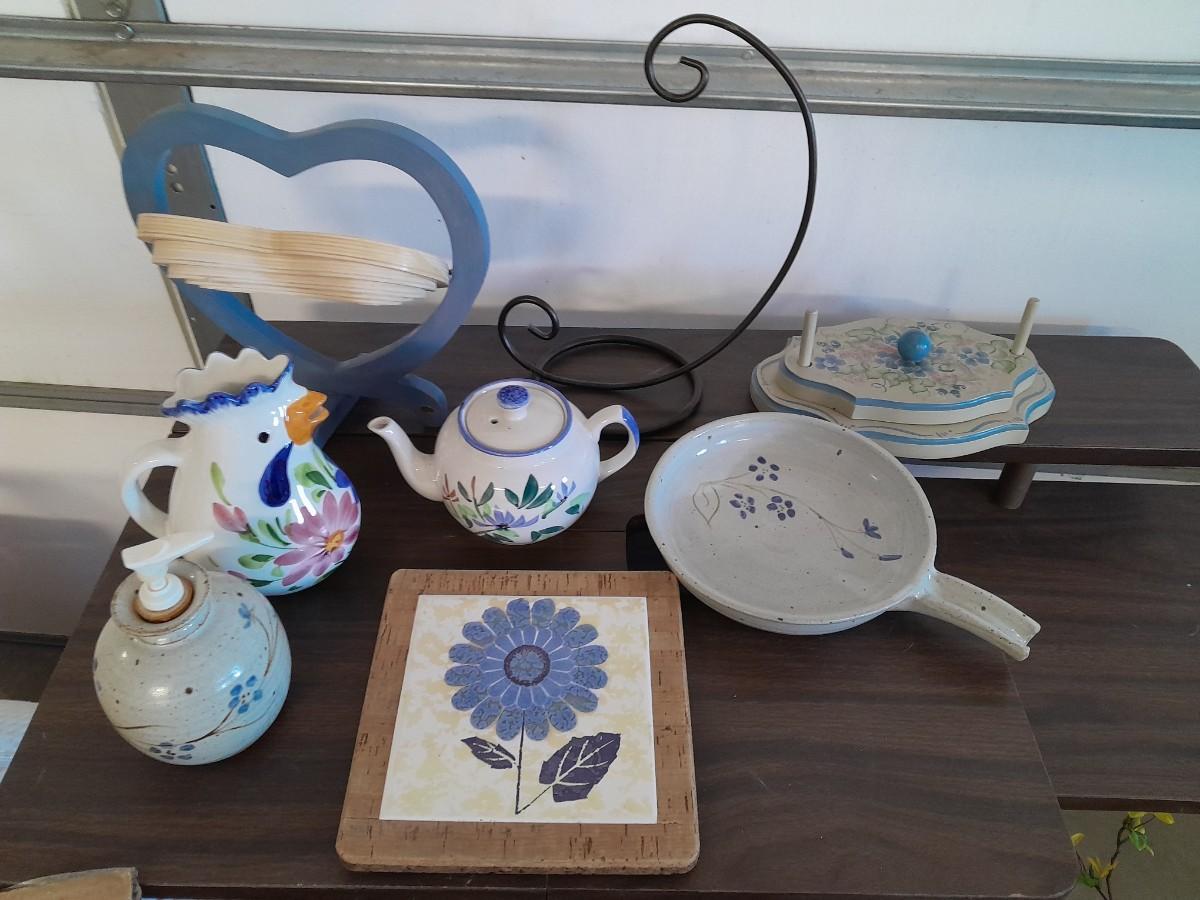 KITCHEN POTTERY PIECES, NAPKIN HOLDER AND HOT PLATE