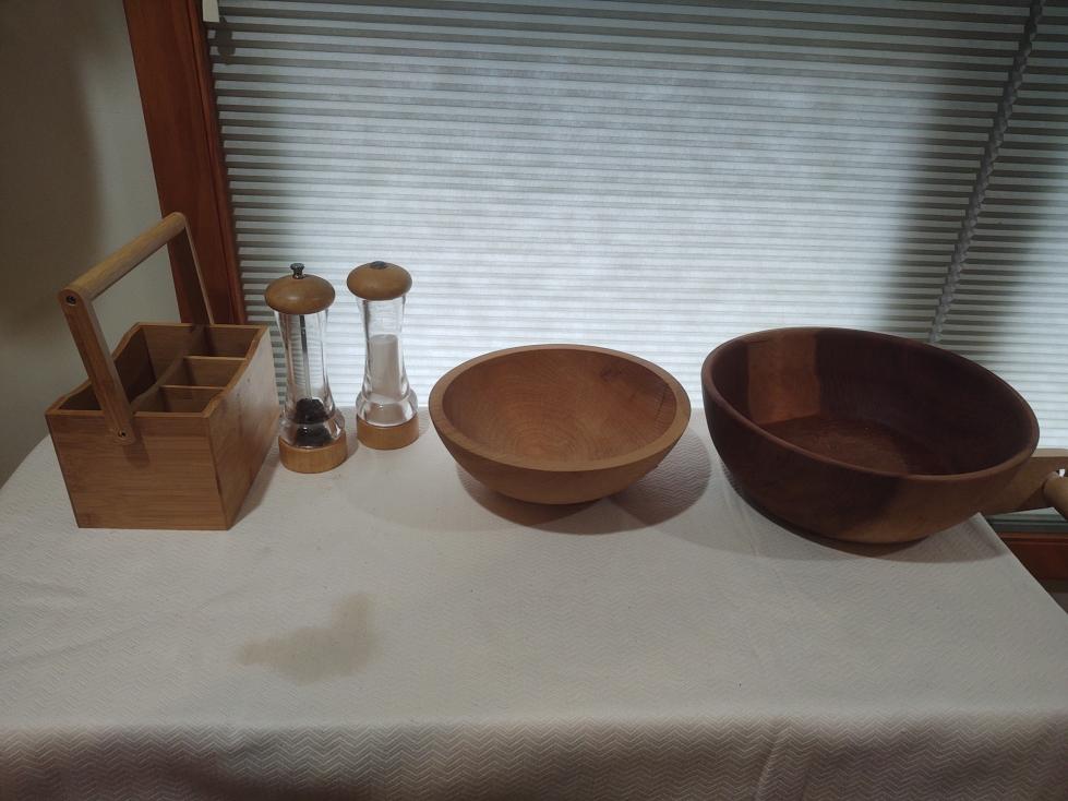 Wooden kitchen serving items.
