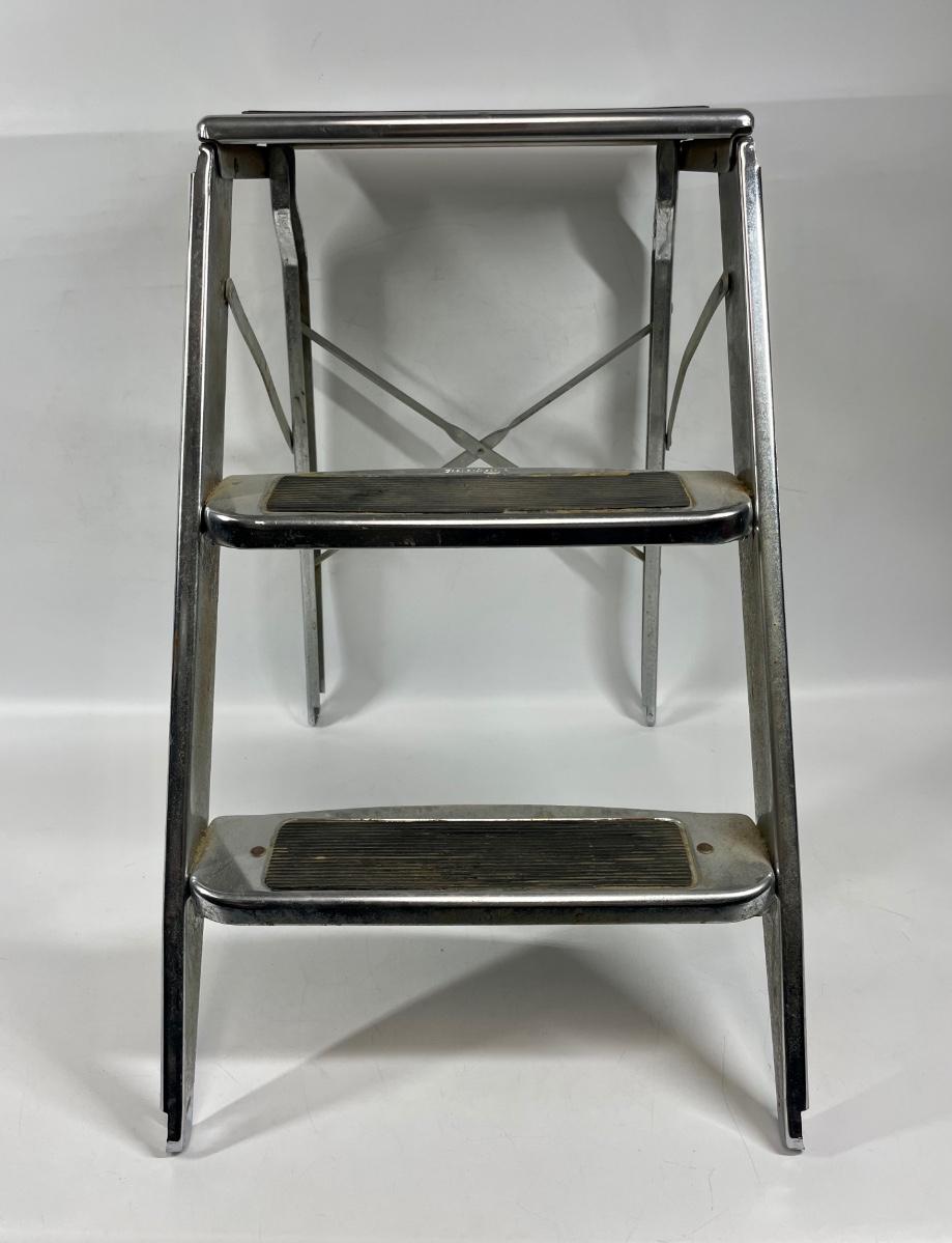 Kitchen Step Ladder by Beauty Ware. Polished chrome finish. Approx. 22" high when opened.