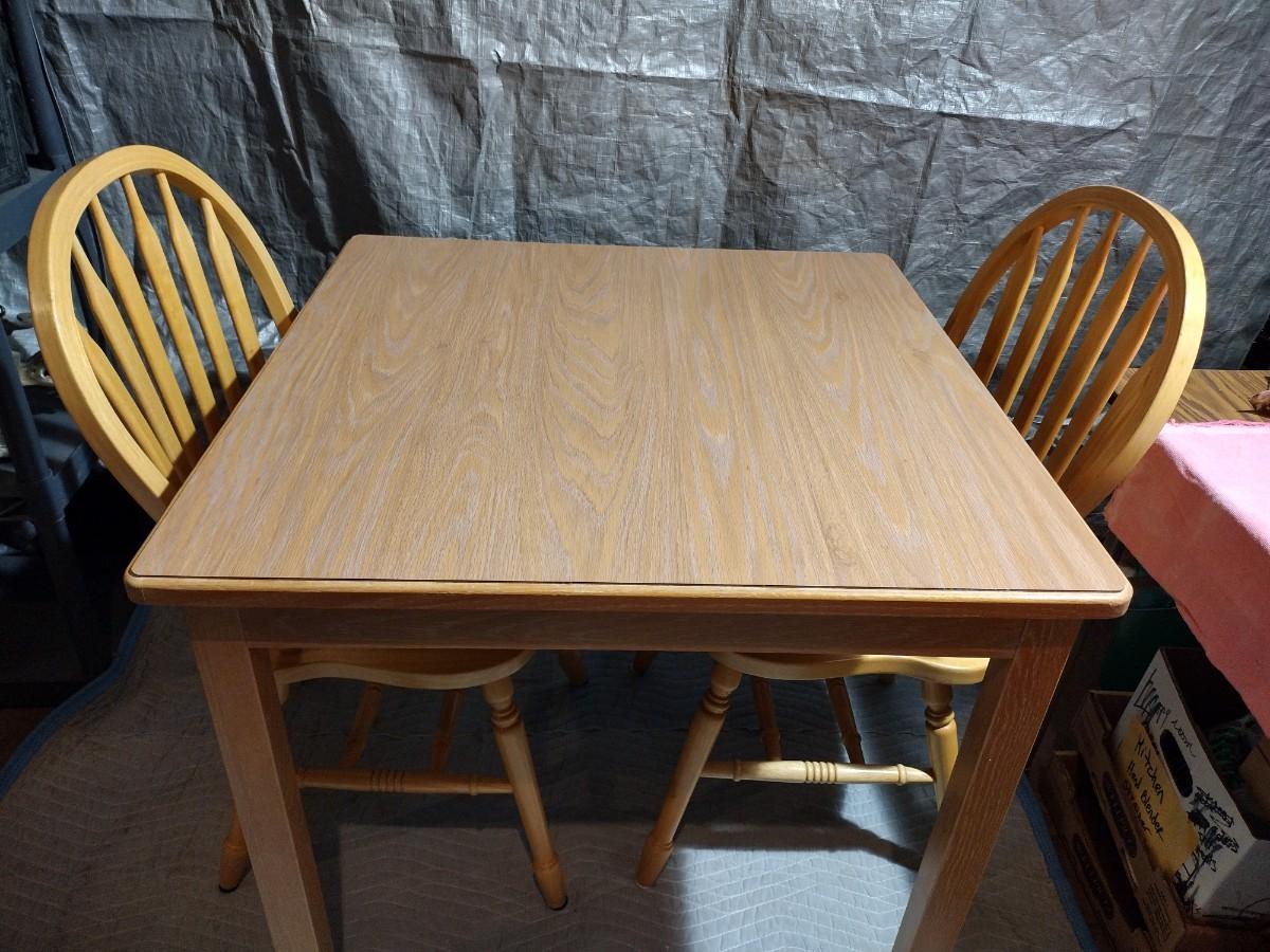 KITCHEN TABLE WITH 2 OAK CHAIRS