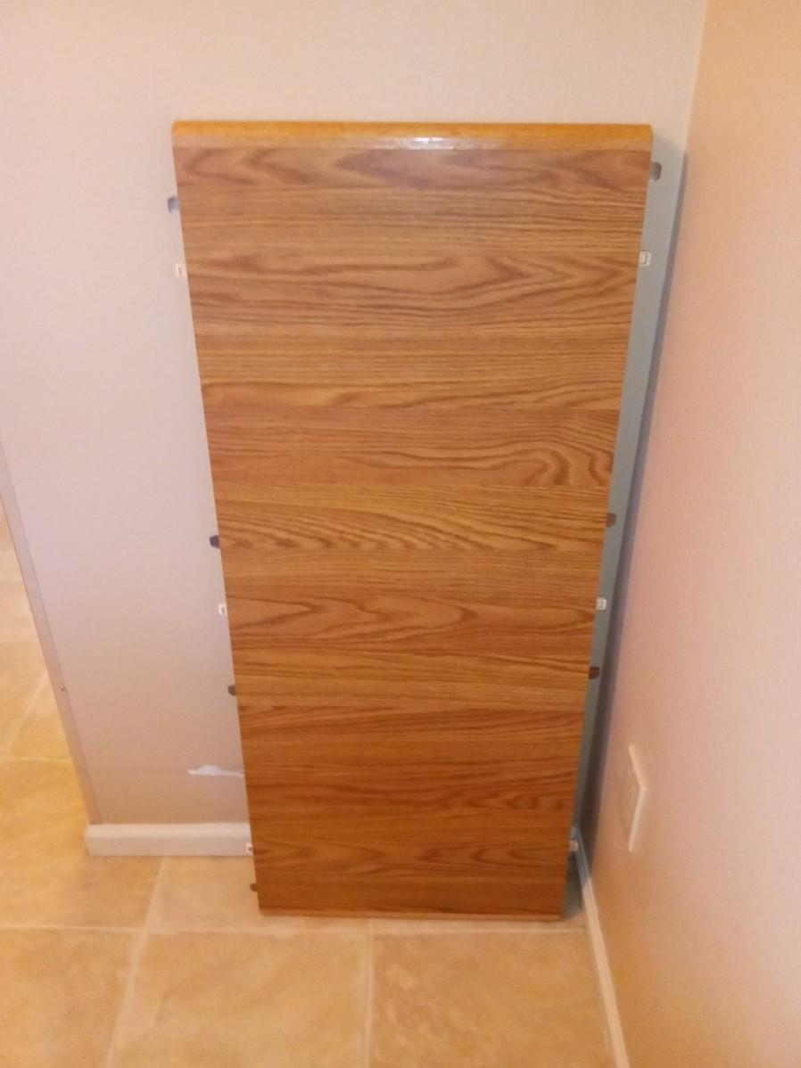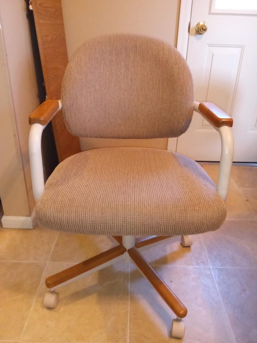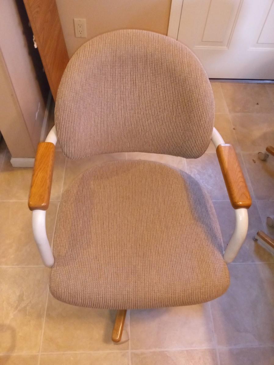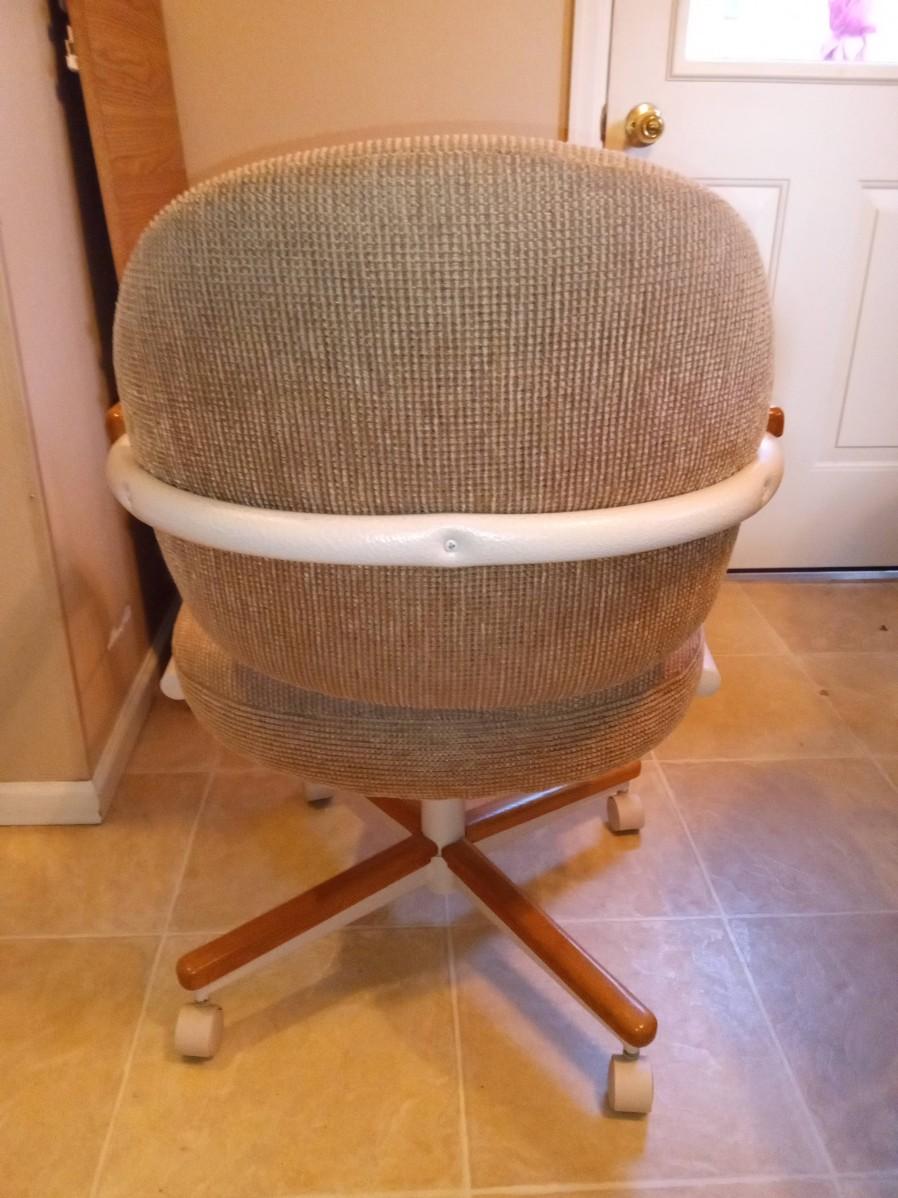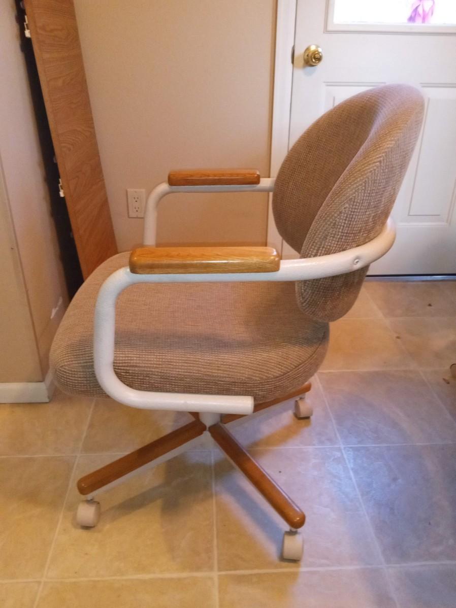 FORMICA TOP KITCHEN TABLE MEASURES 42" WITHOUT THE LEAF, 59" WITH. THE CHAIRS AND TABLE ARE IN VERY GOOD CONDITION