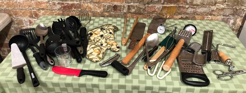 New condition on much of this lot of kitchen utensils..nice variety...as shown...