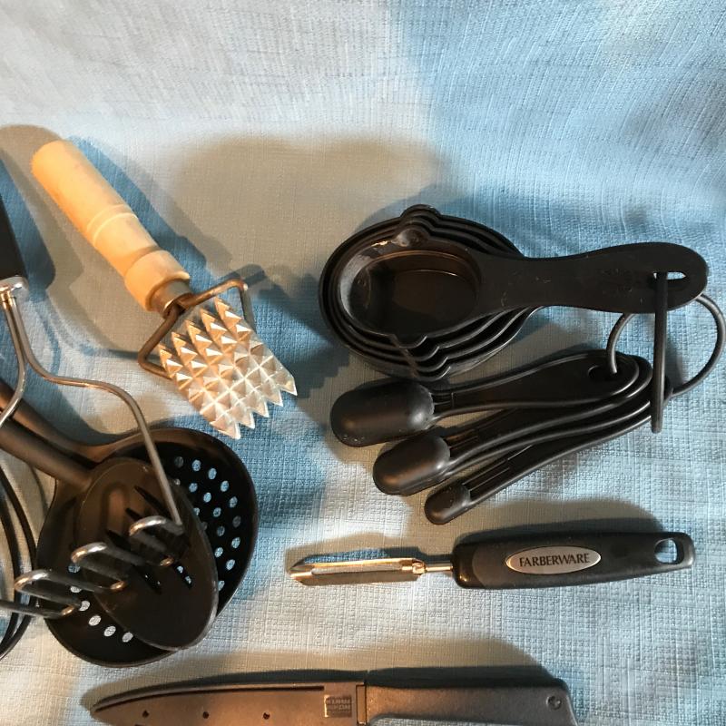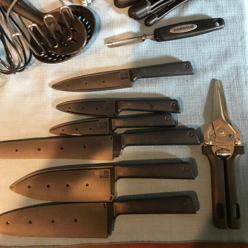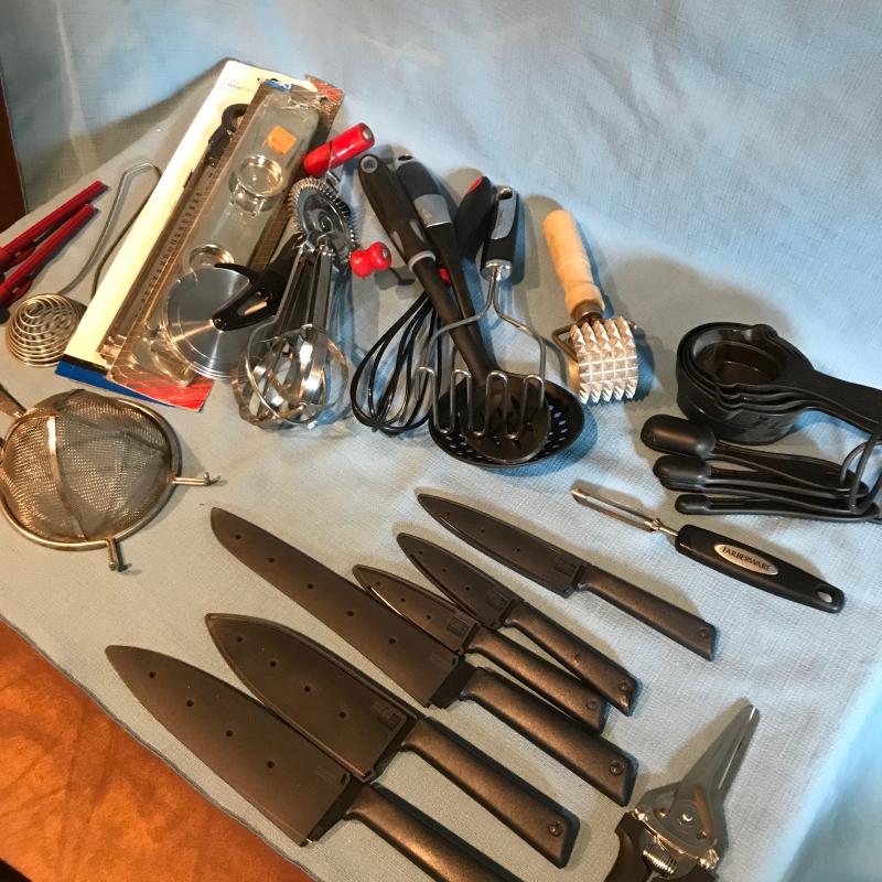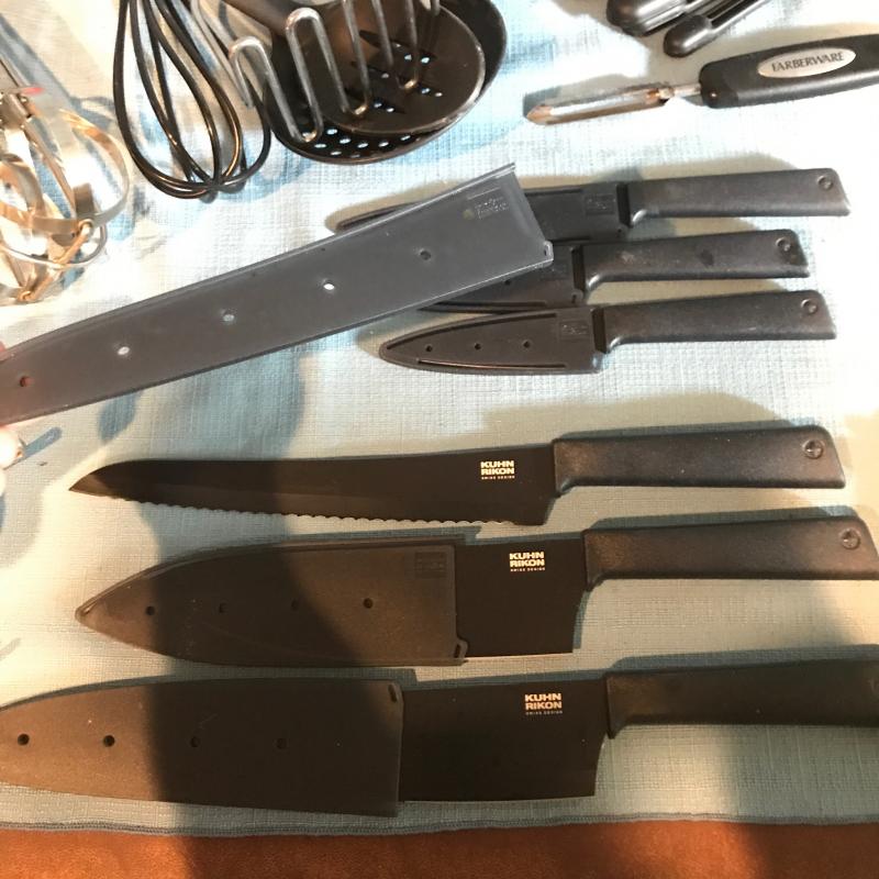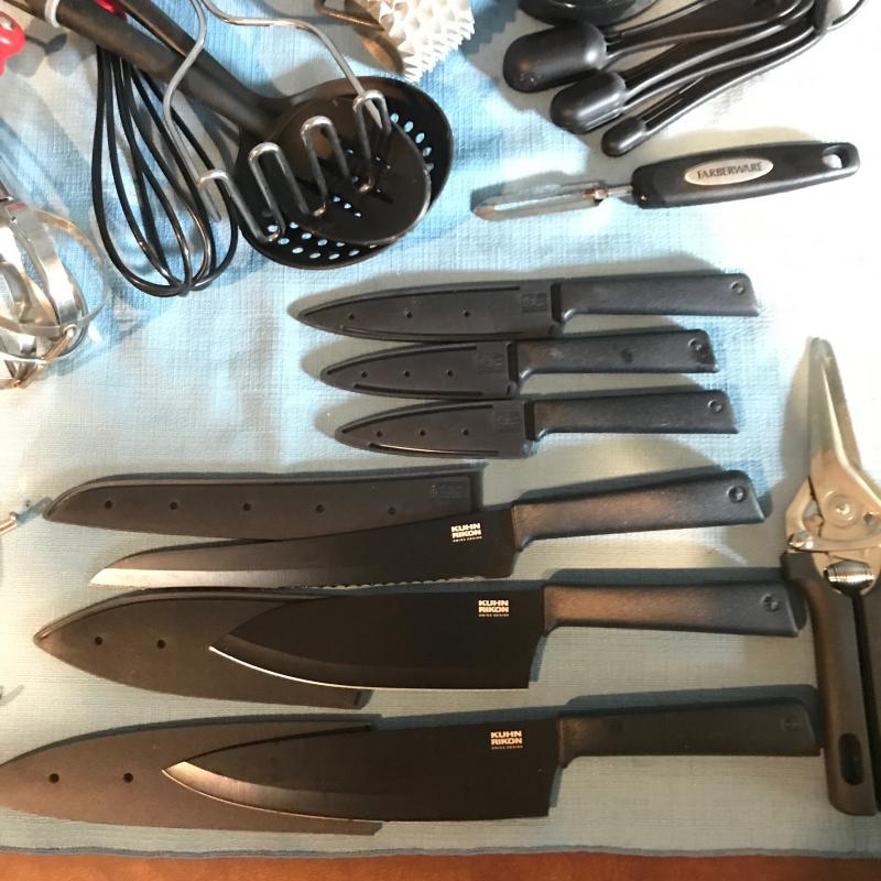 Lot includes dozens of kitchen utensils and a set of Kuhn Rikon knives with covers. See pics. Shipping available or local pickup in Hendersonville, NC.