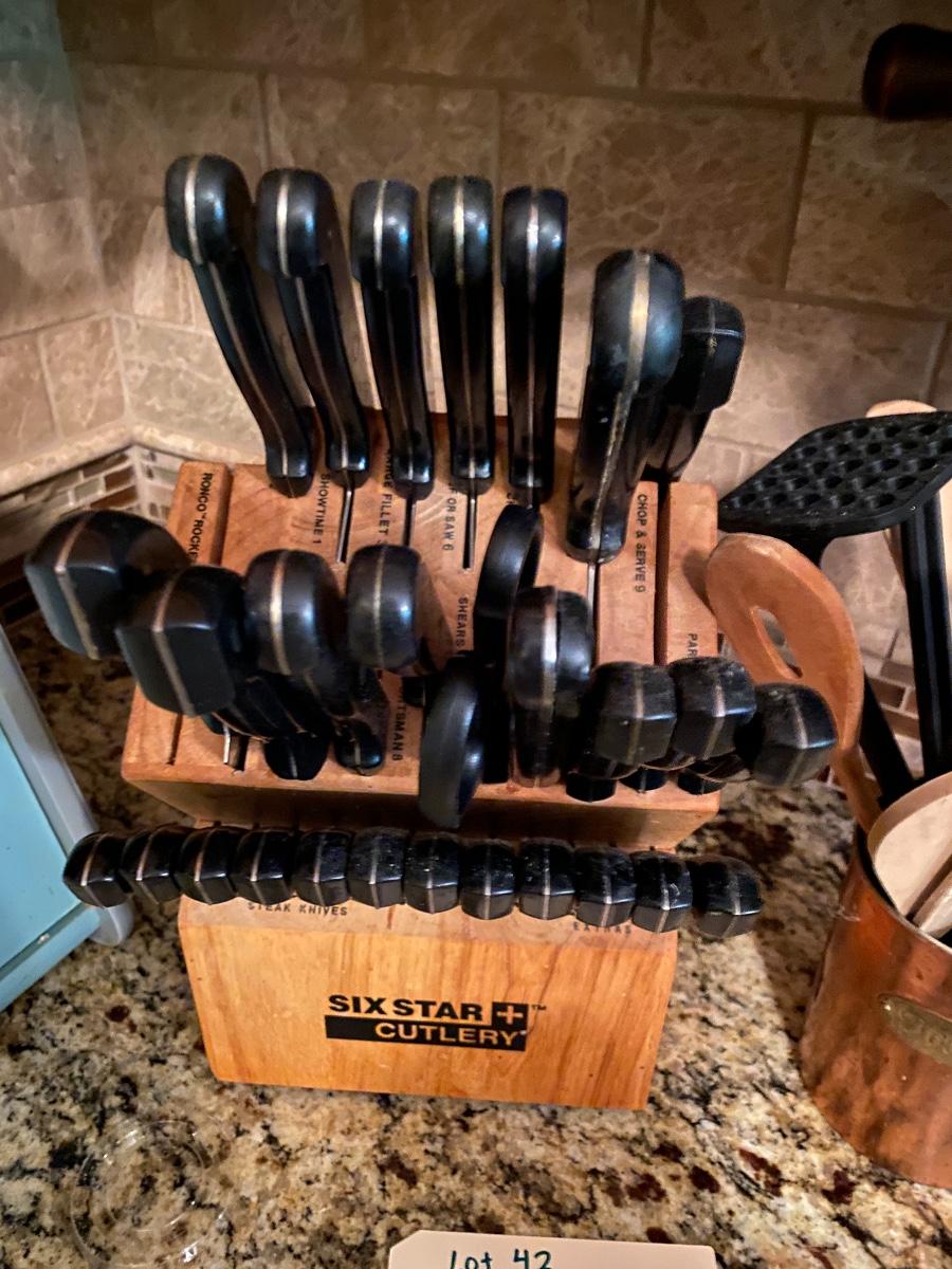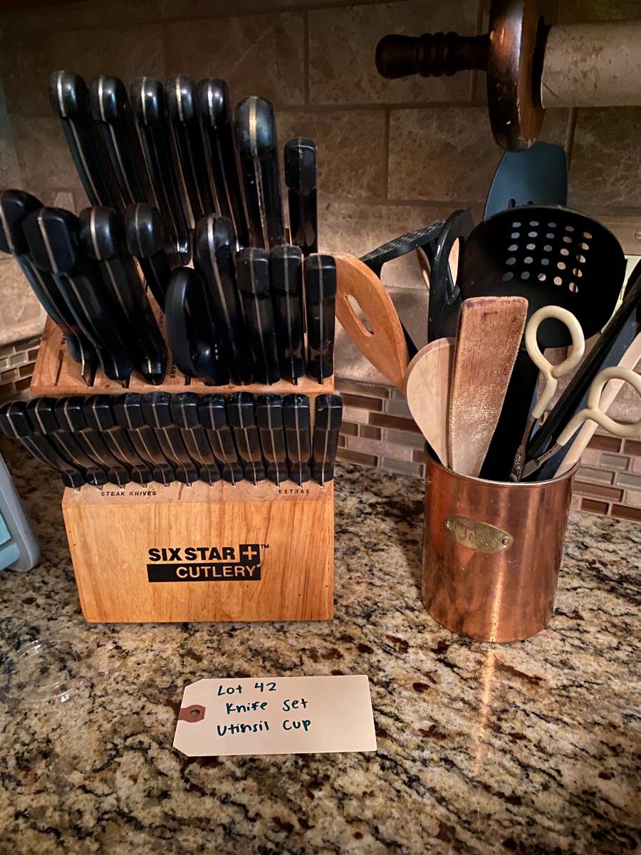 Utensil Lot Inclueding 6 Star Cutlery Knife Set, and Utinsil Cup as pictured