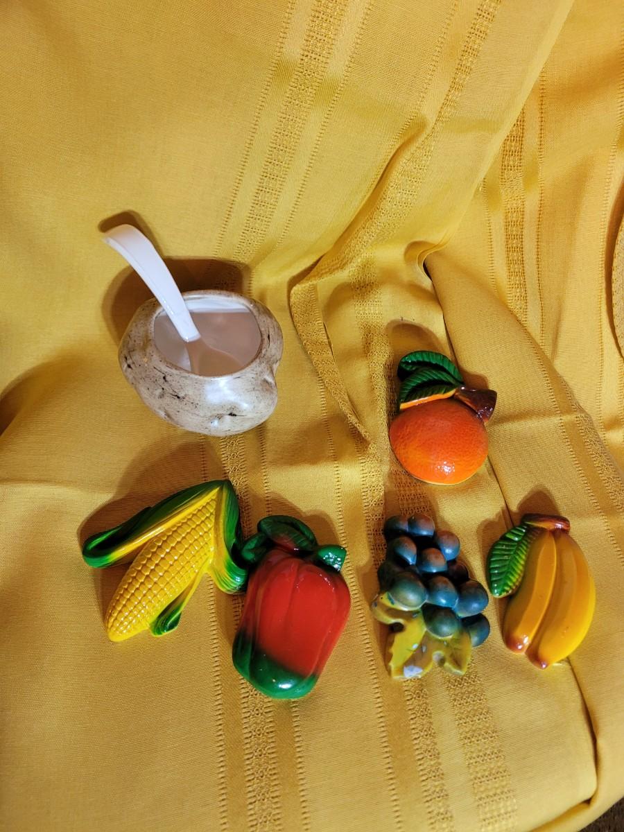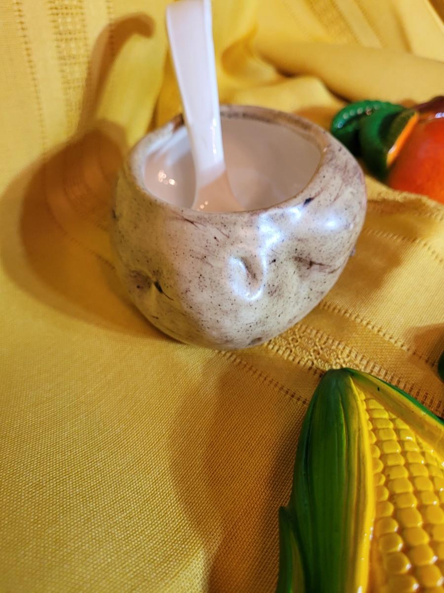 Kitchen wall hangings and potato for sour cream