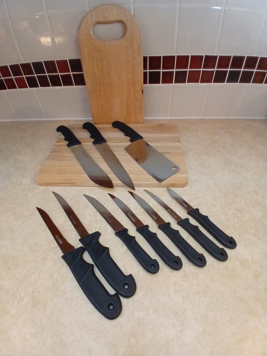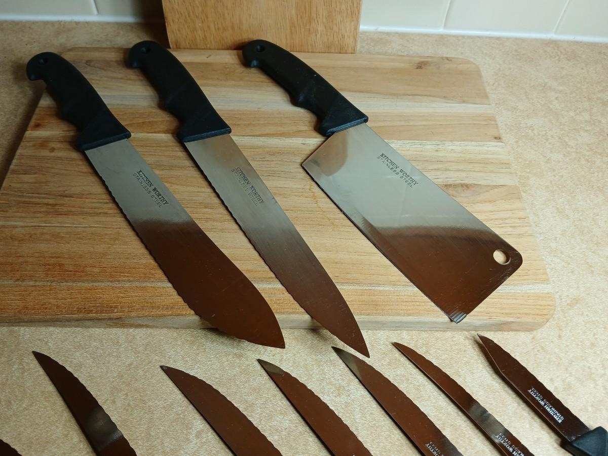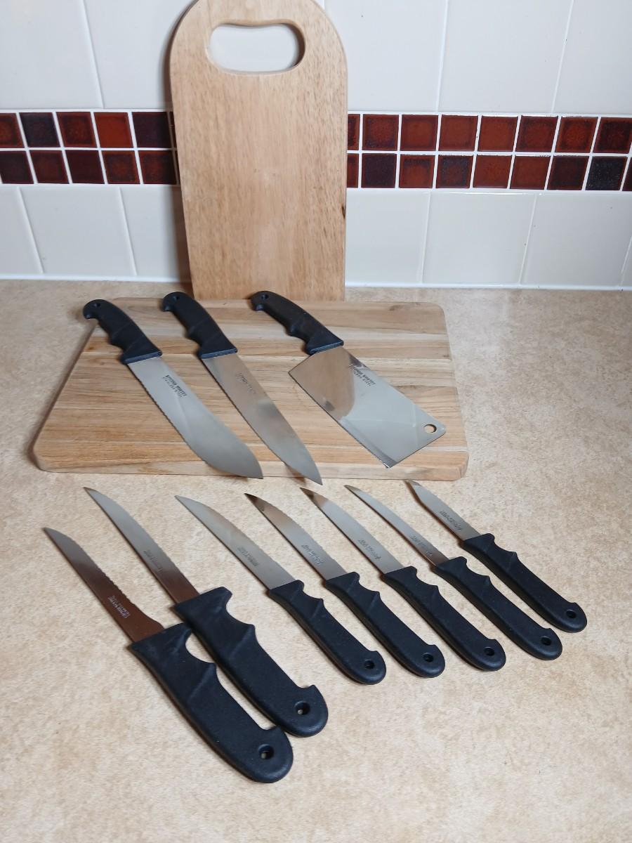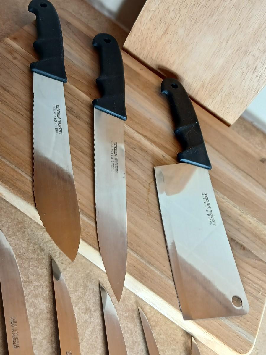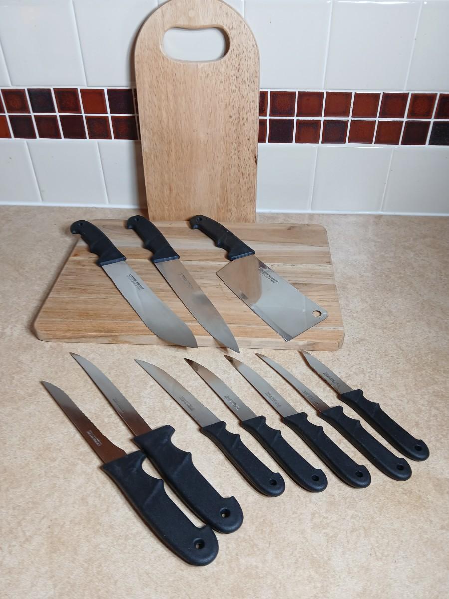 Kitchen Worthy stainless steel Knife set with two cutting boards