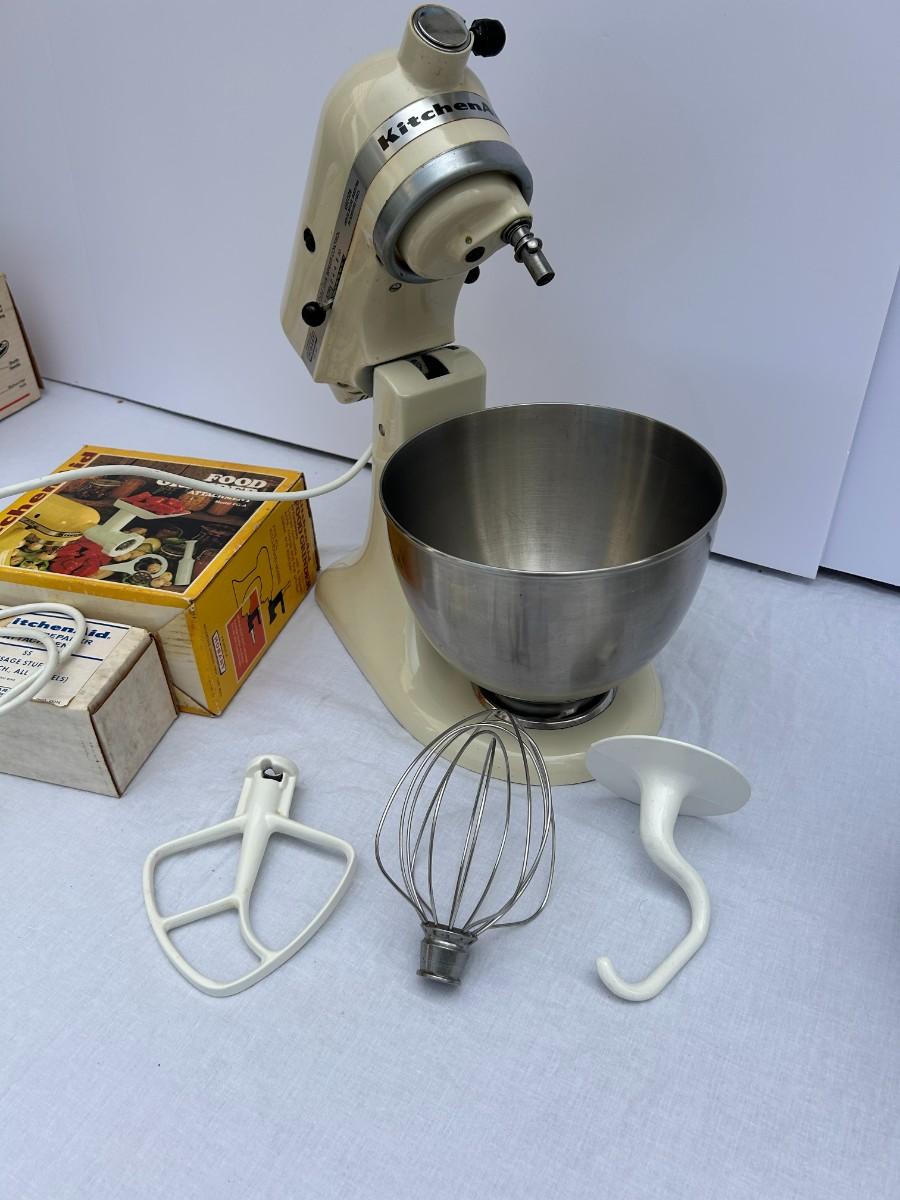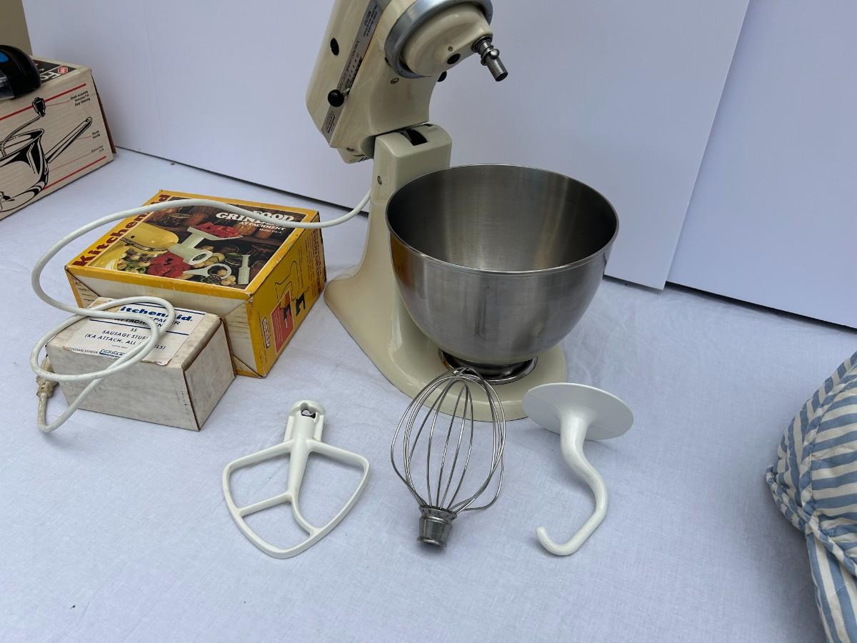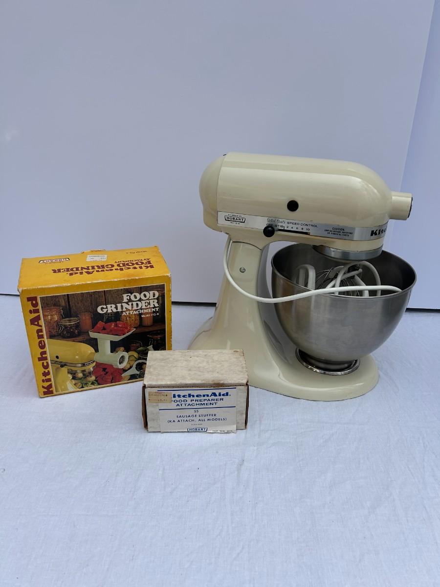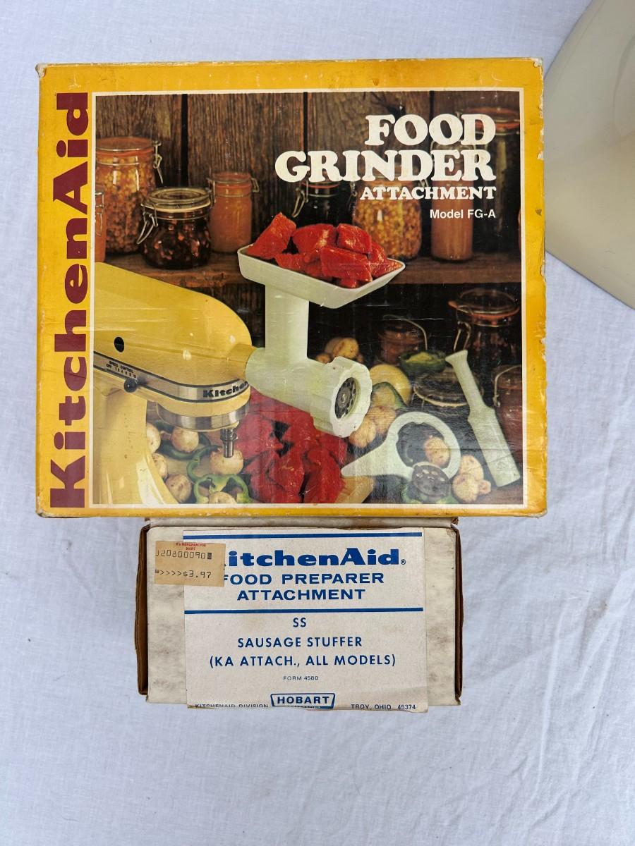 KitchenAid Mixer in like new condition with grinder and sausage maker.