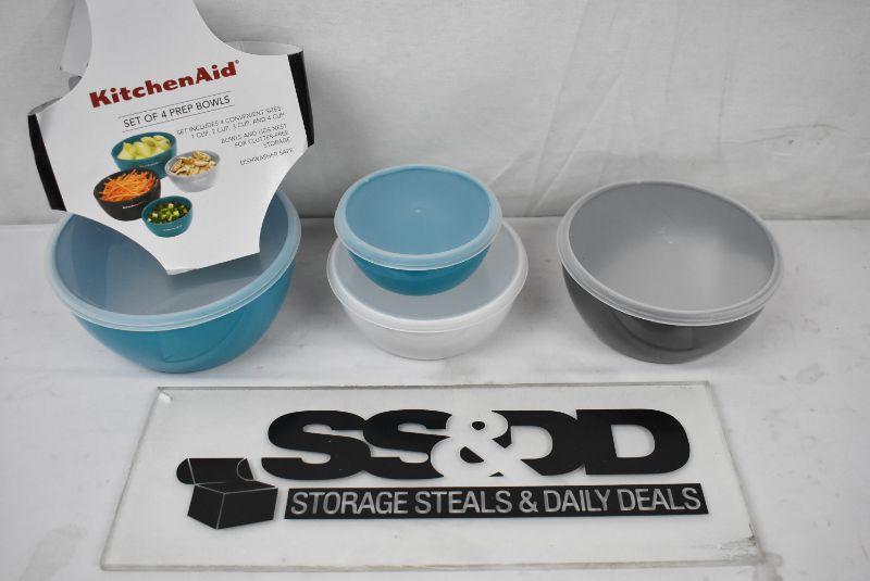 KitchenAid 4 Piece Prep Bowl Set with Lids, Assorted Sizes and Colors