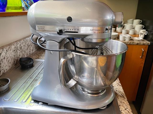 Classic KitchenAid heavy-duty "Artisan' mixer. Includes mixing paddle, dough hook.