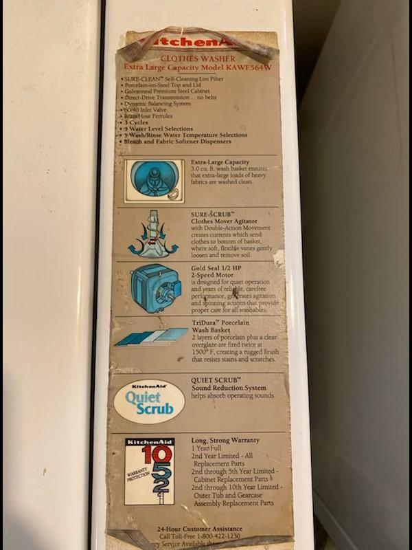 Used pair of Kitchen Aid washer and dryer. In good working condition. Includes manual.