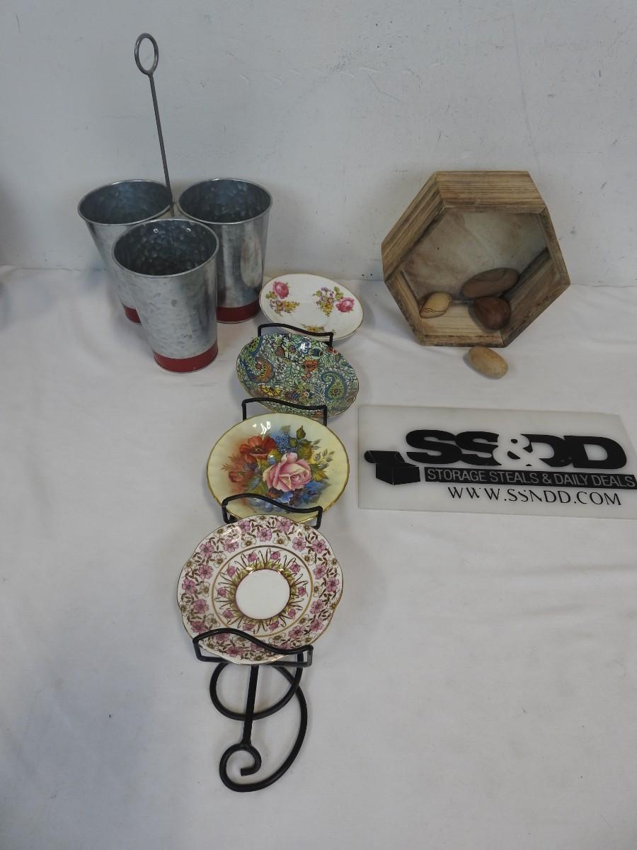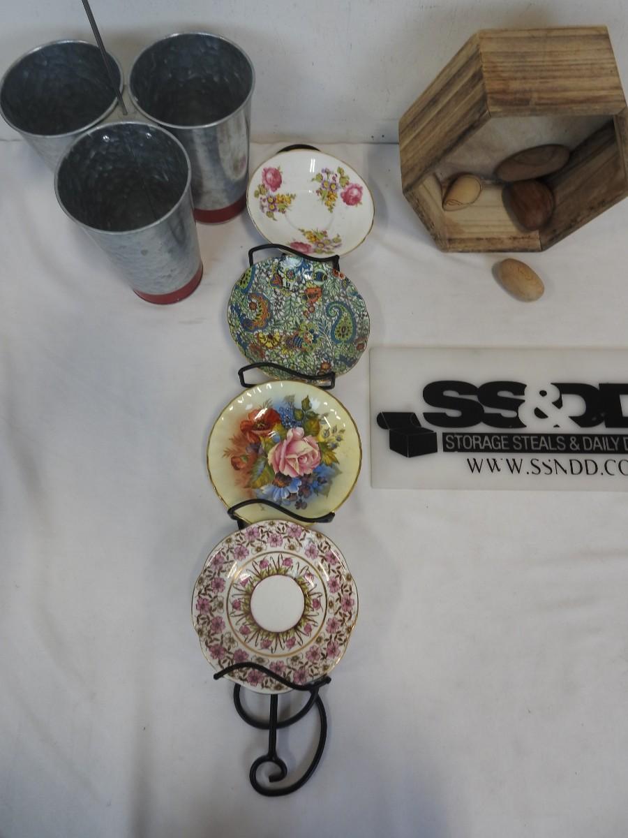 Kitchen/Home Decor: Small decorative plates/ display rack, Wooden Hexagon/Rocks