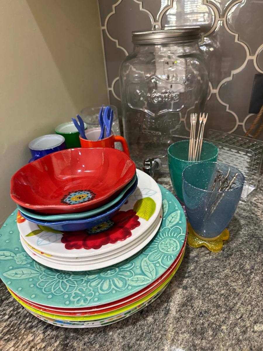 Kitchen-Studio California dishes & Yorkshire Glassware drink dispenser. Everything photo is included