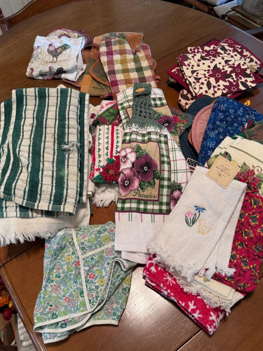 Kitchen Towels, Potholders, Aprons, and Table Linens Lot