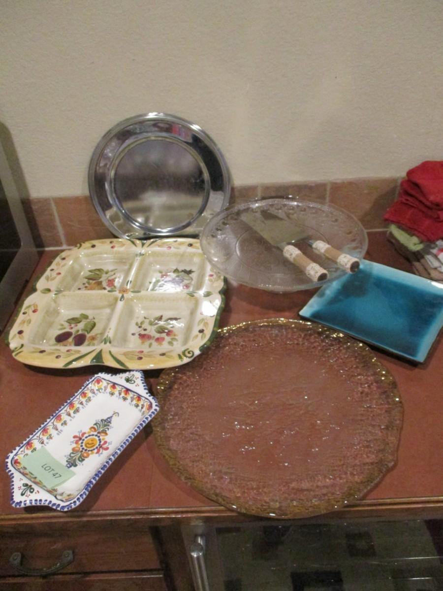 Various items including Glass Platter, Appetizer servers, Cake dish, Knife & Pie Server