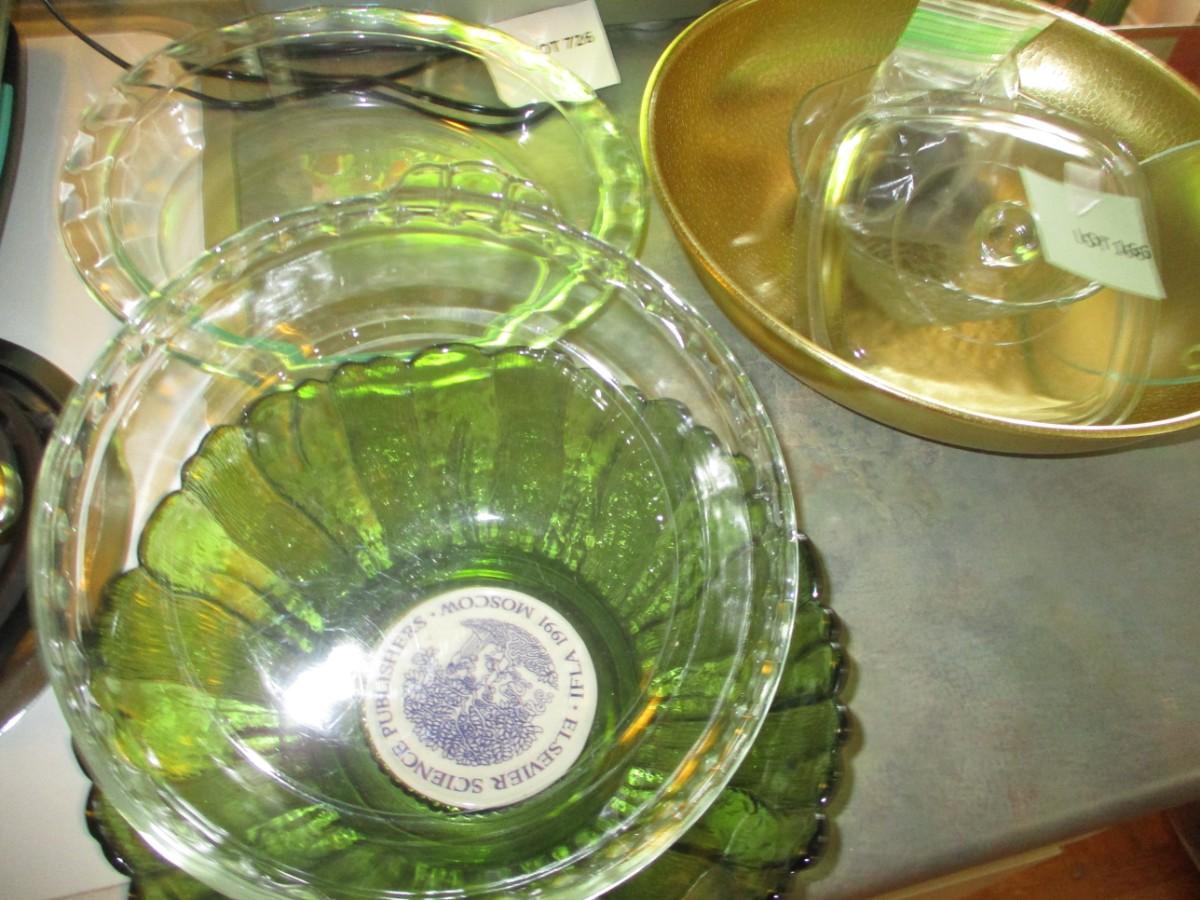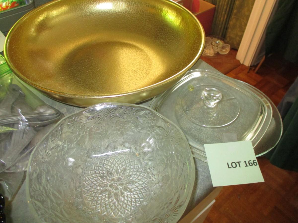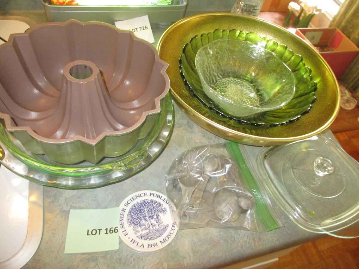 Bundt Pan, Glass bowls, glass pie pans. Measuring spoons