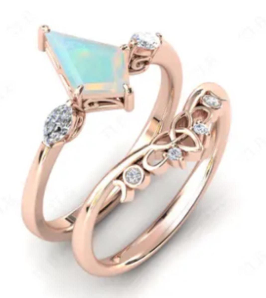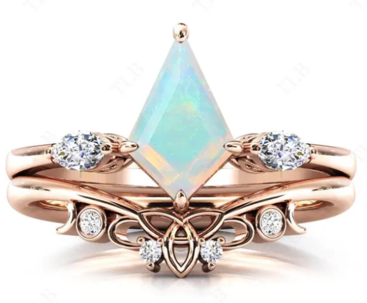 Kite Cut Natural Opal & Moissanite Bridal Set