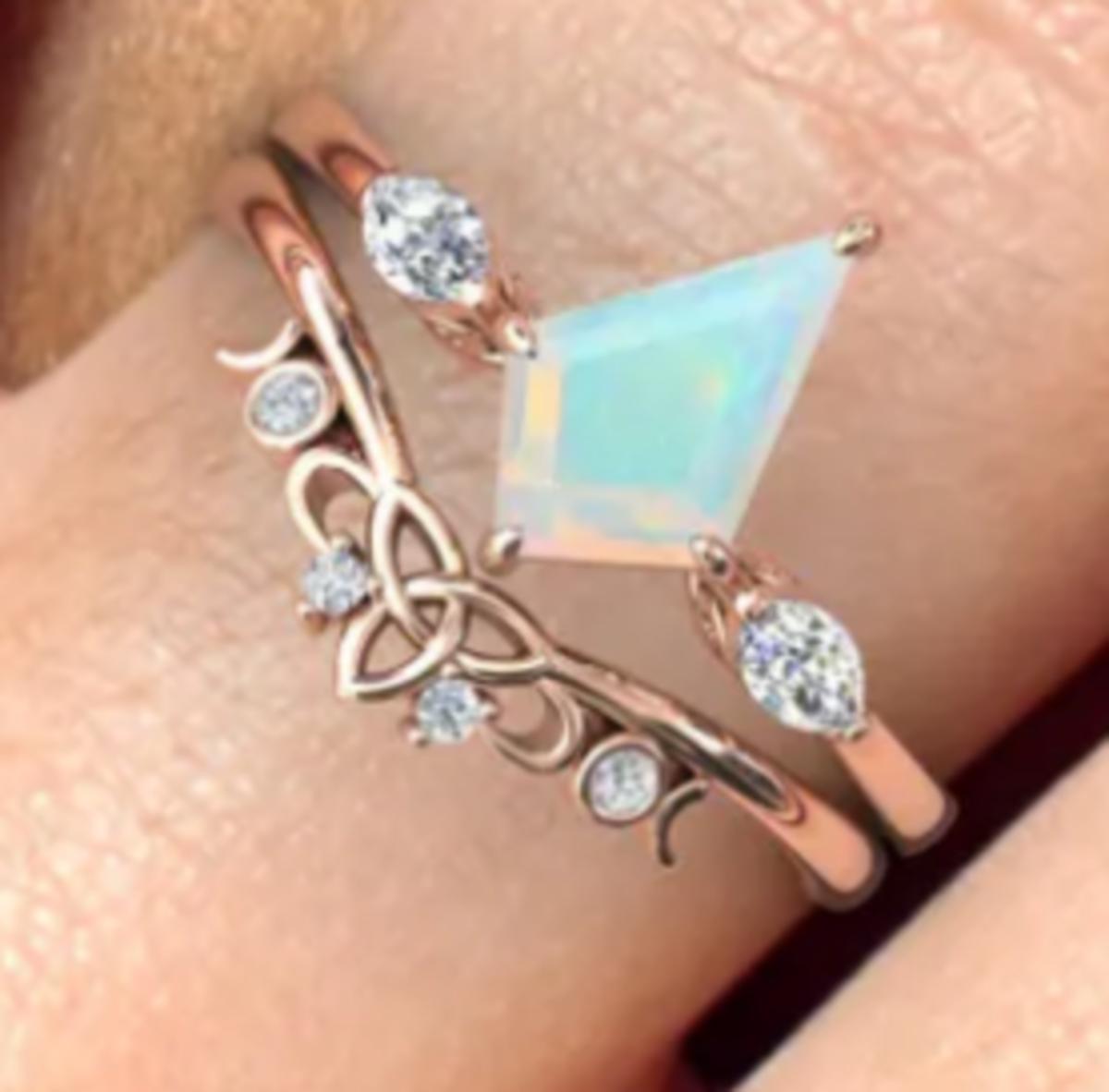 Kite Cut Natural Opal & Moissanite Bridal Set
