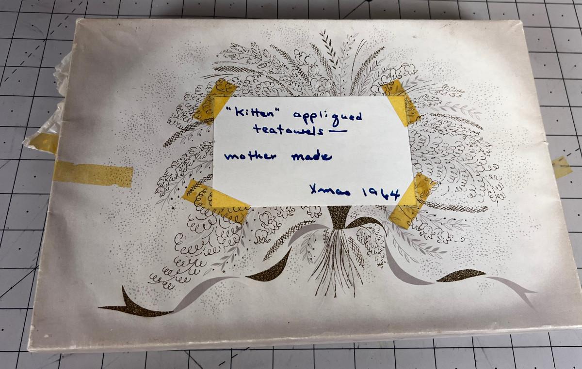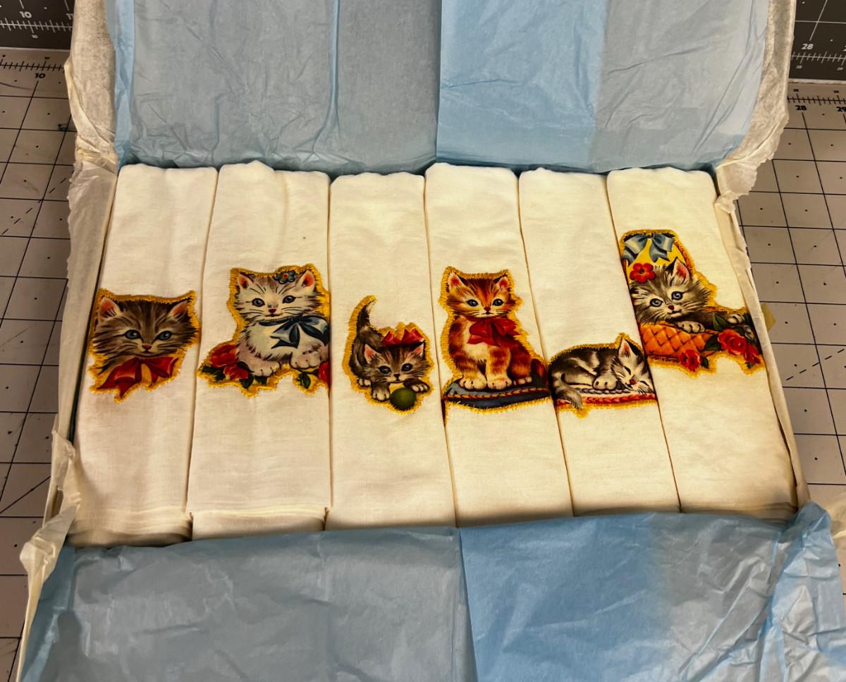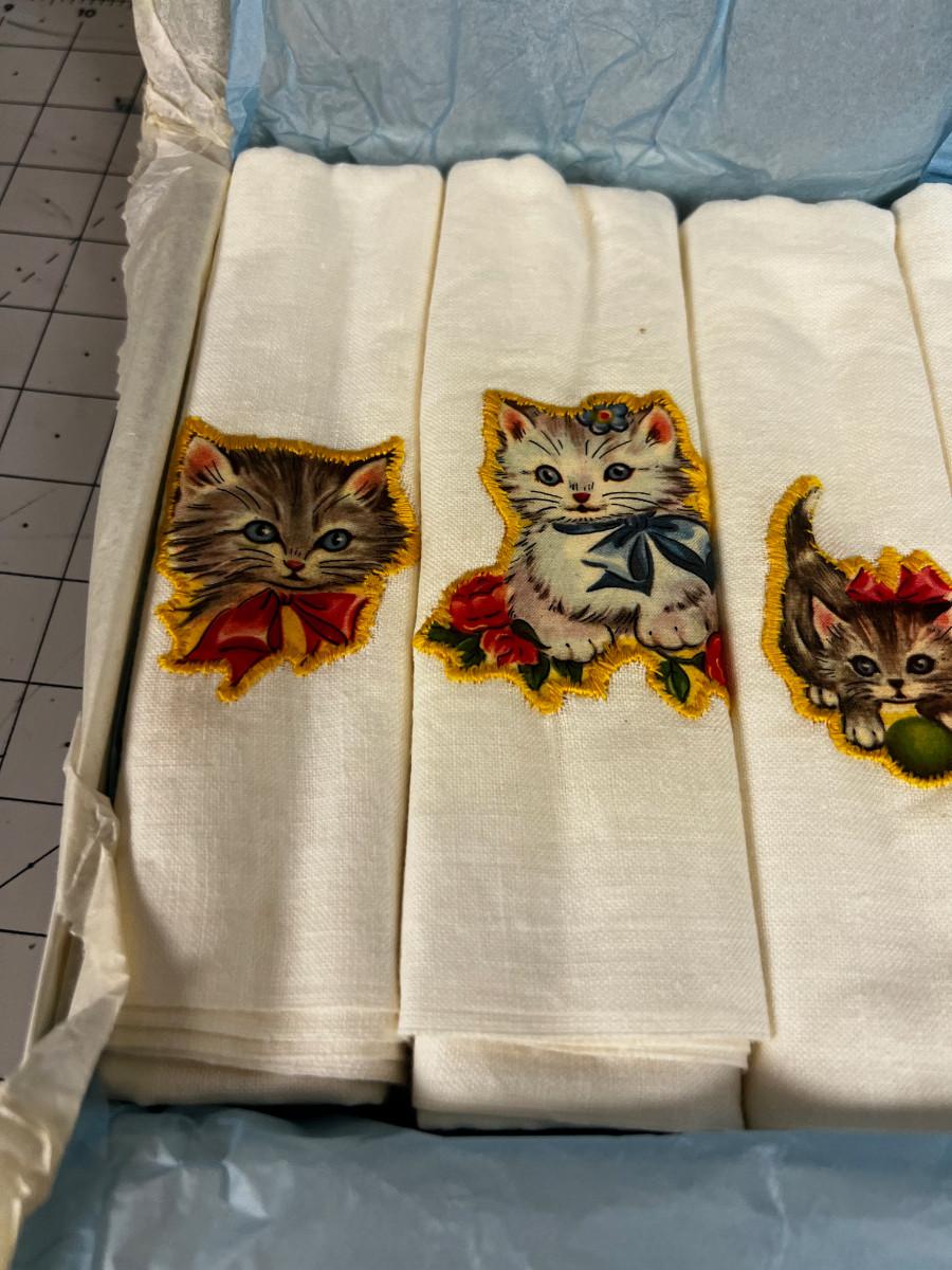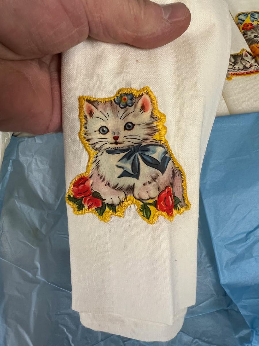 Kitten Applique Tea Towels made by MOTHER Dated 1964