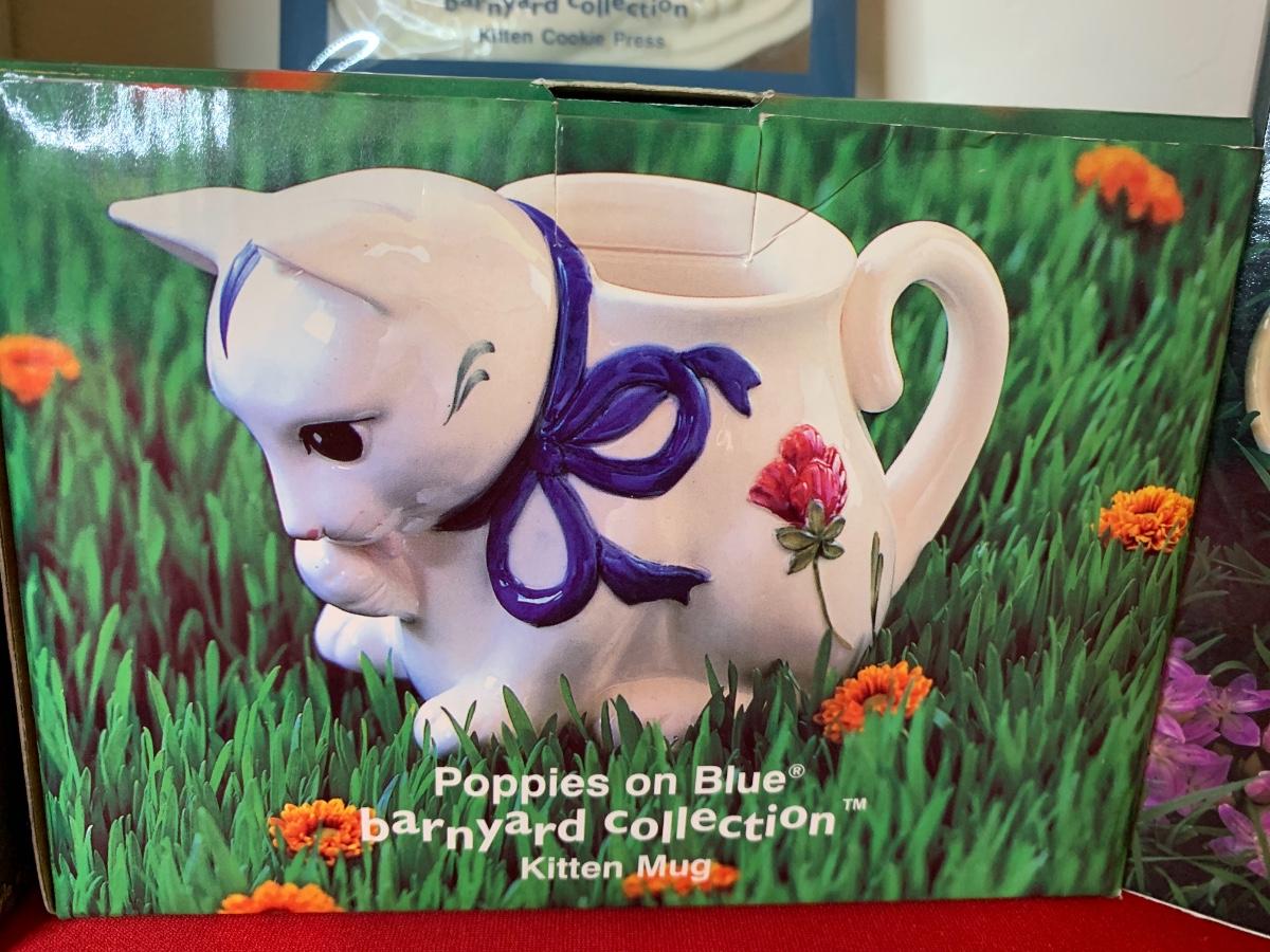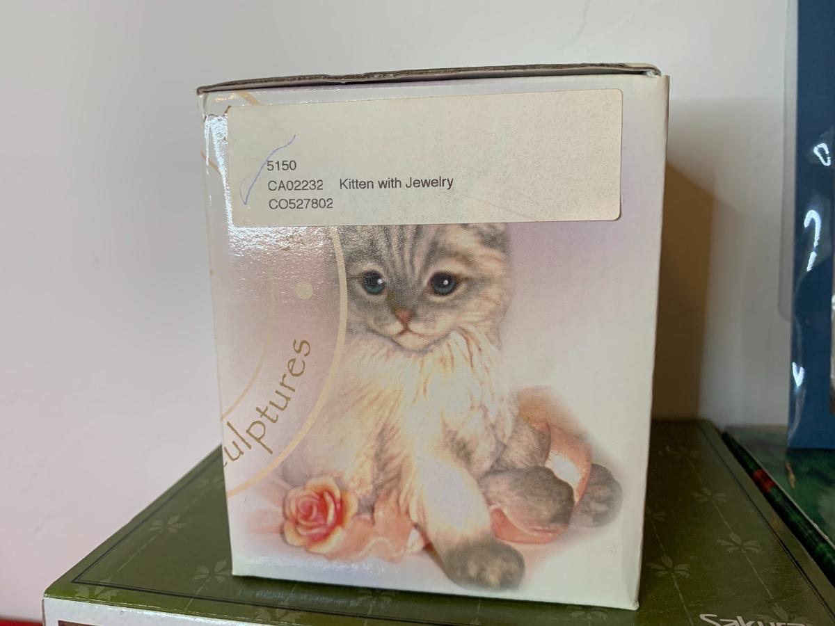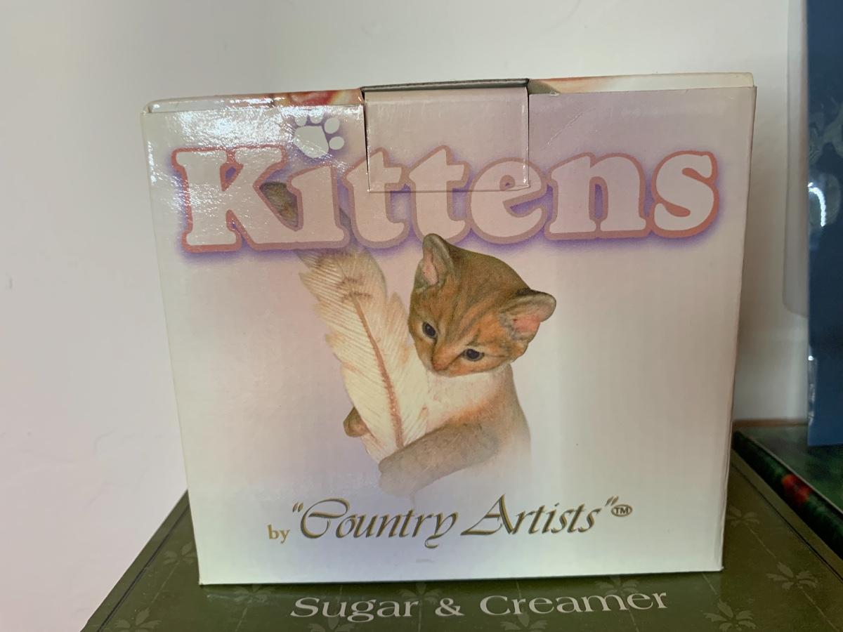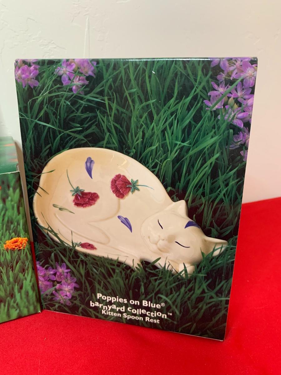 Cat sugar and creamer, Kitten figurine, Lenox cat cookie press, Lenox cat creamer, Lenox kitten spoon rest - all in original boxes, very good condition.