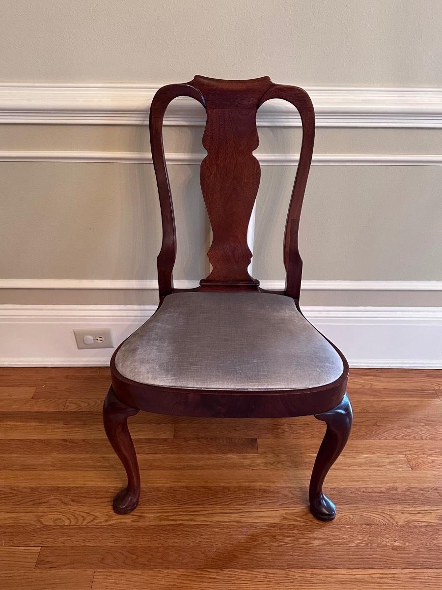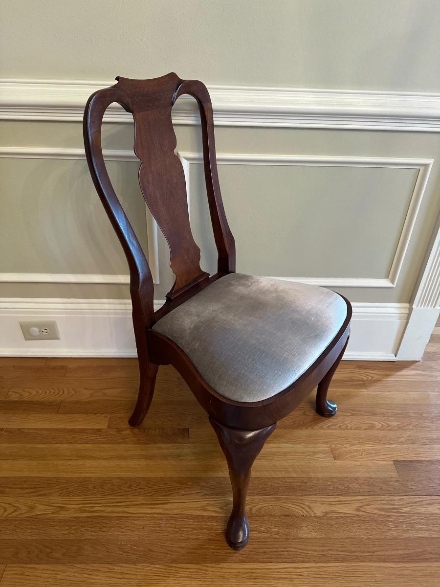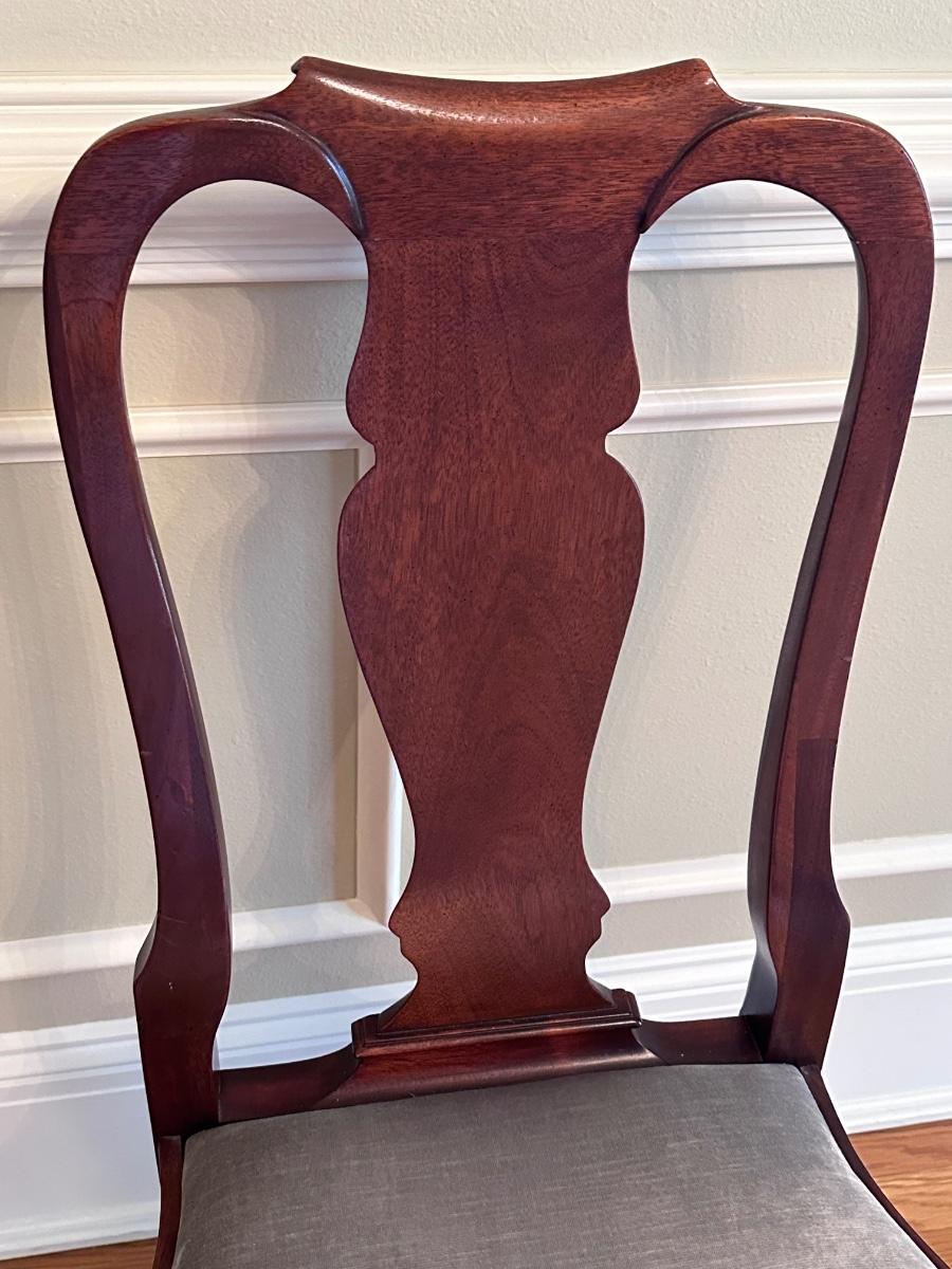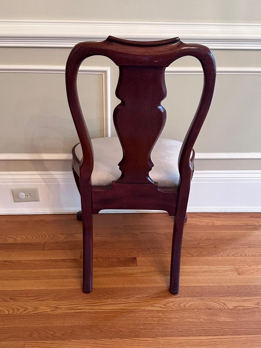 Comes with 4 Queen Anne Mahogany Chairs have extra wide seats with a very light sage fabric ~ Upholstered Chairs not included, but can be purchased separately ~ Rug is sold separately.