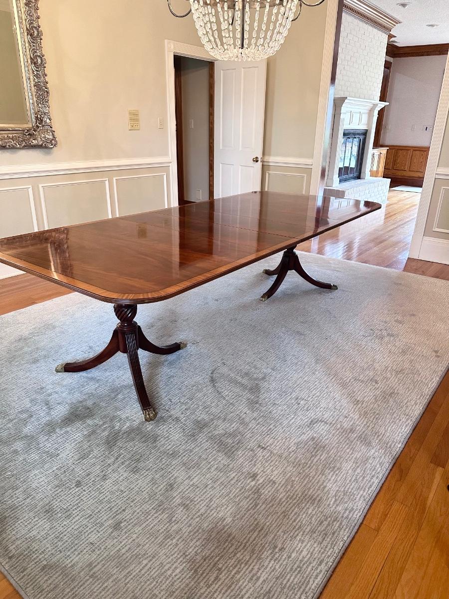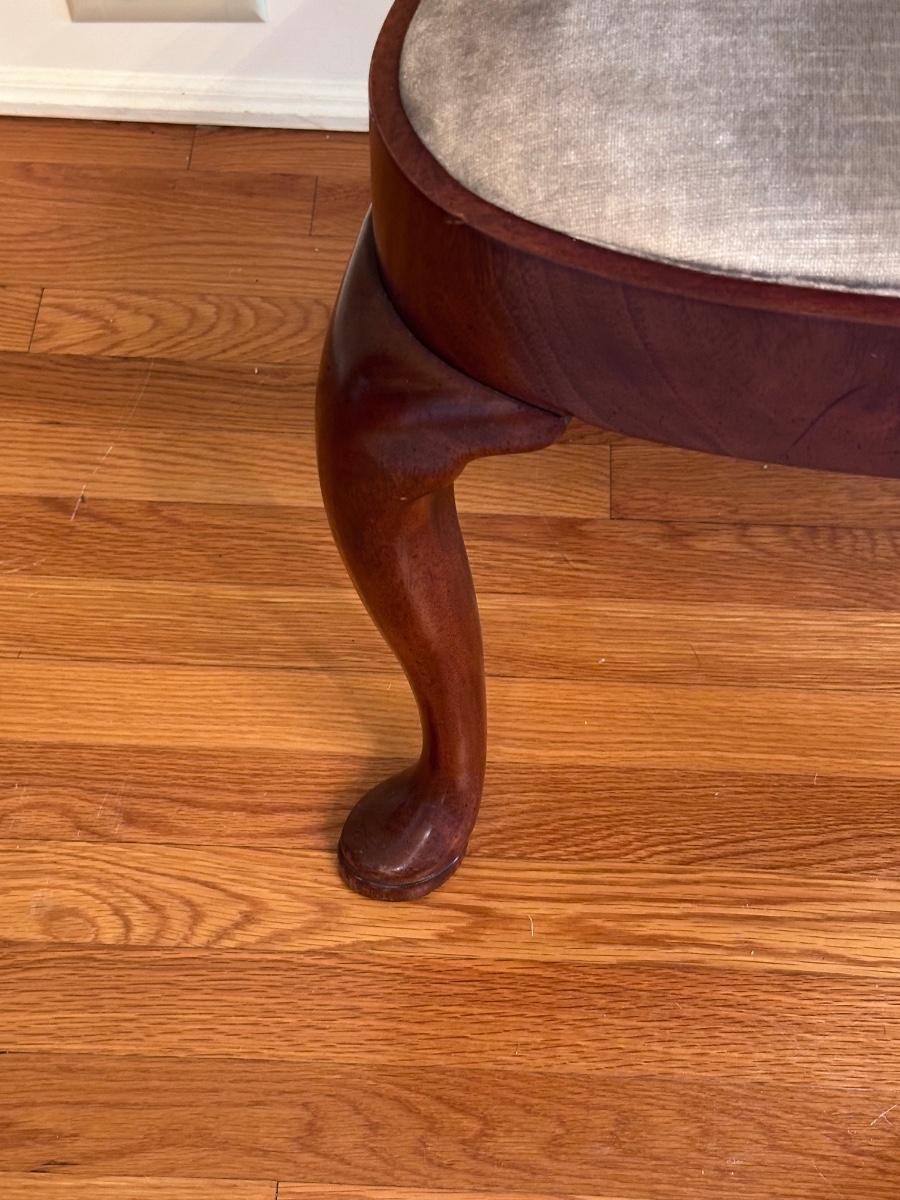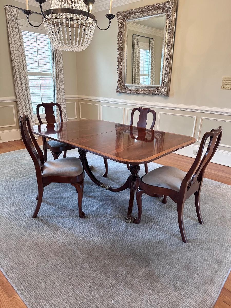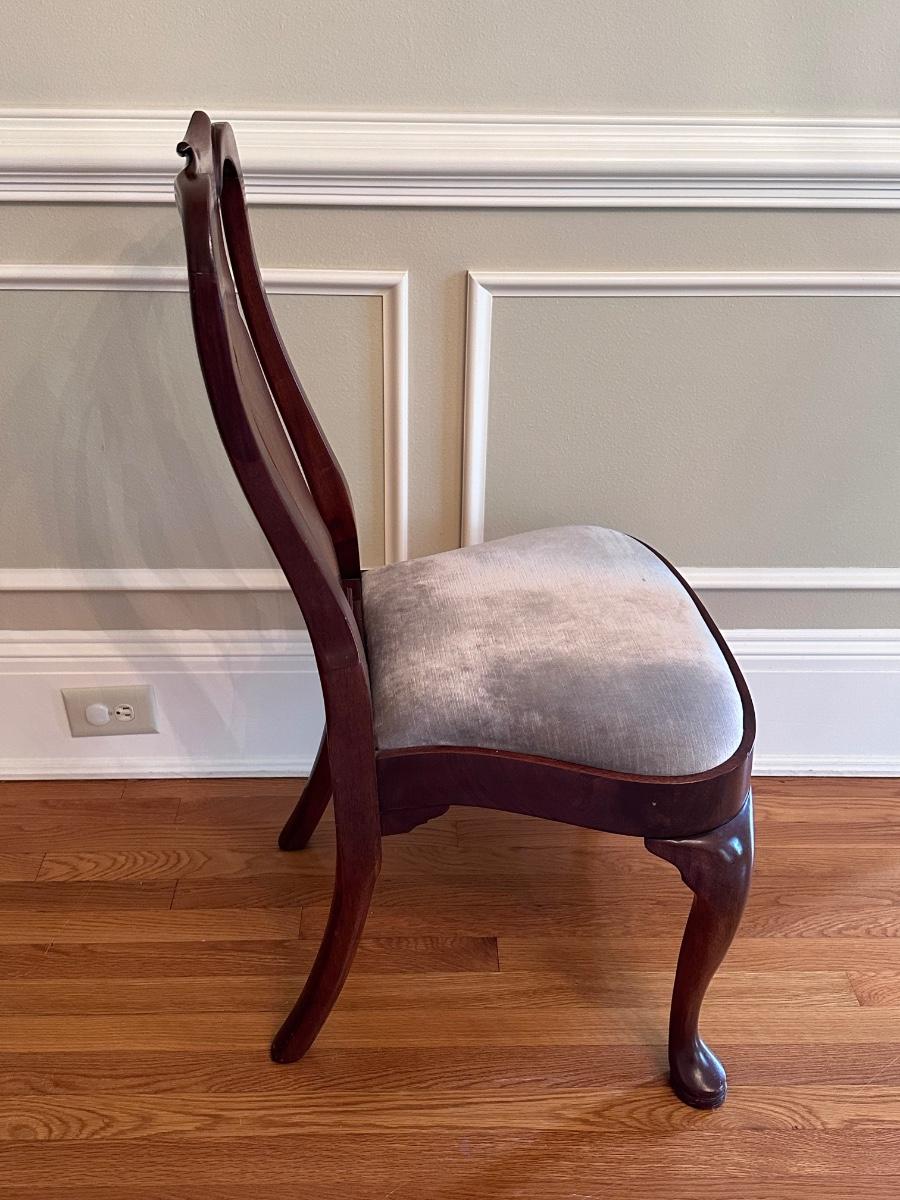 Comes with 4 Queen Anne Mahogany Chairs have extra wide seats with a very light sage fabric ~ Upholstered Chairs not included, but can be purchased separately ~ Rug is sold separately.
