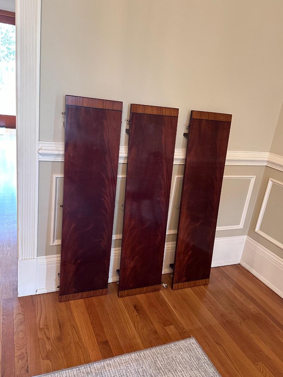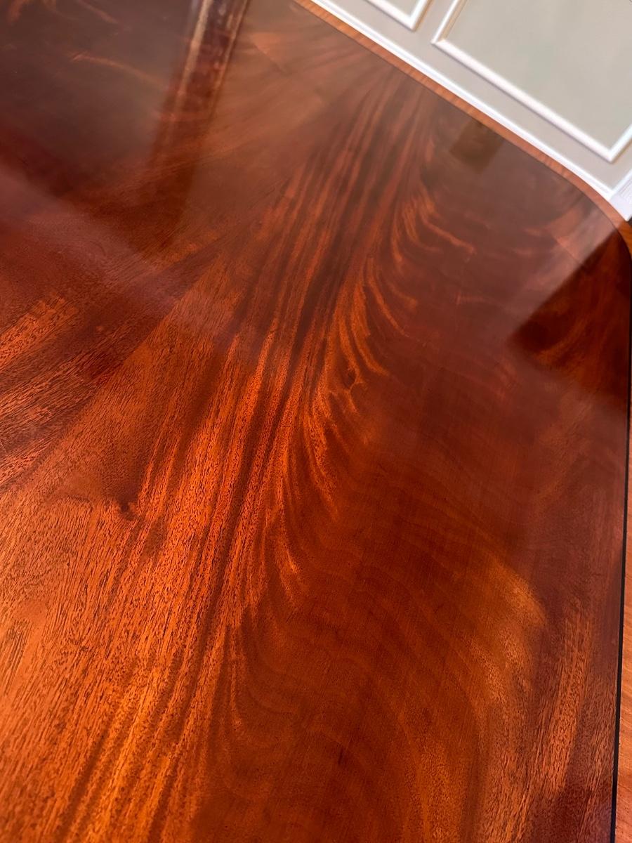 Purchased in 1986 ~ Incredible Like New Condition ~ Table is Mahogany and swirl mahogany with satinwood banded border, and Ebony inlay.