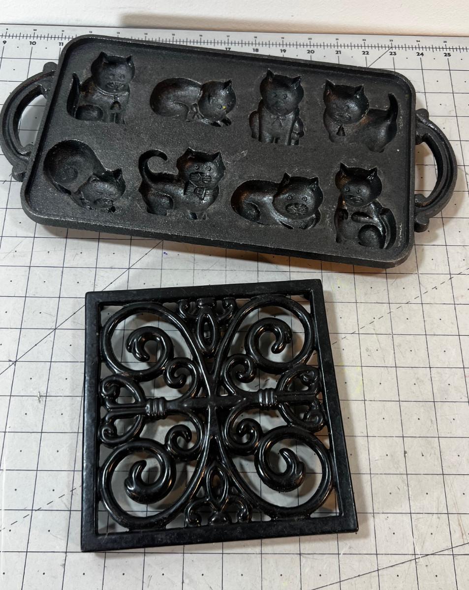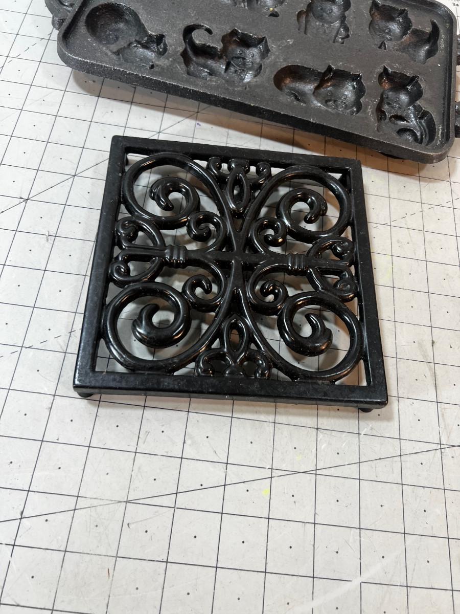 Includes decorative trivet. Used. Good Usable Condition. FUNNY!