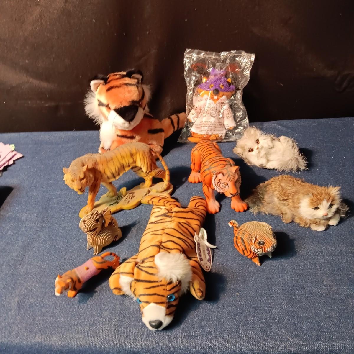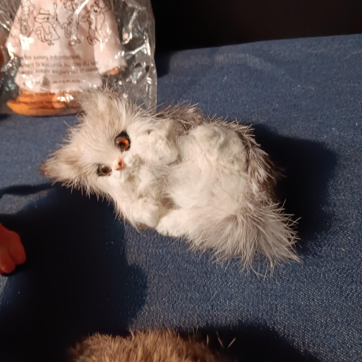 KITTY CATS MADE OF RABBIT FUR PLUS PLUSH AND HARD PLASTIC TIGERS