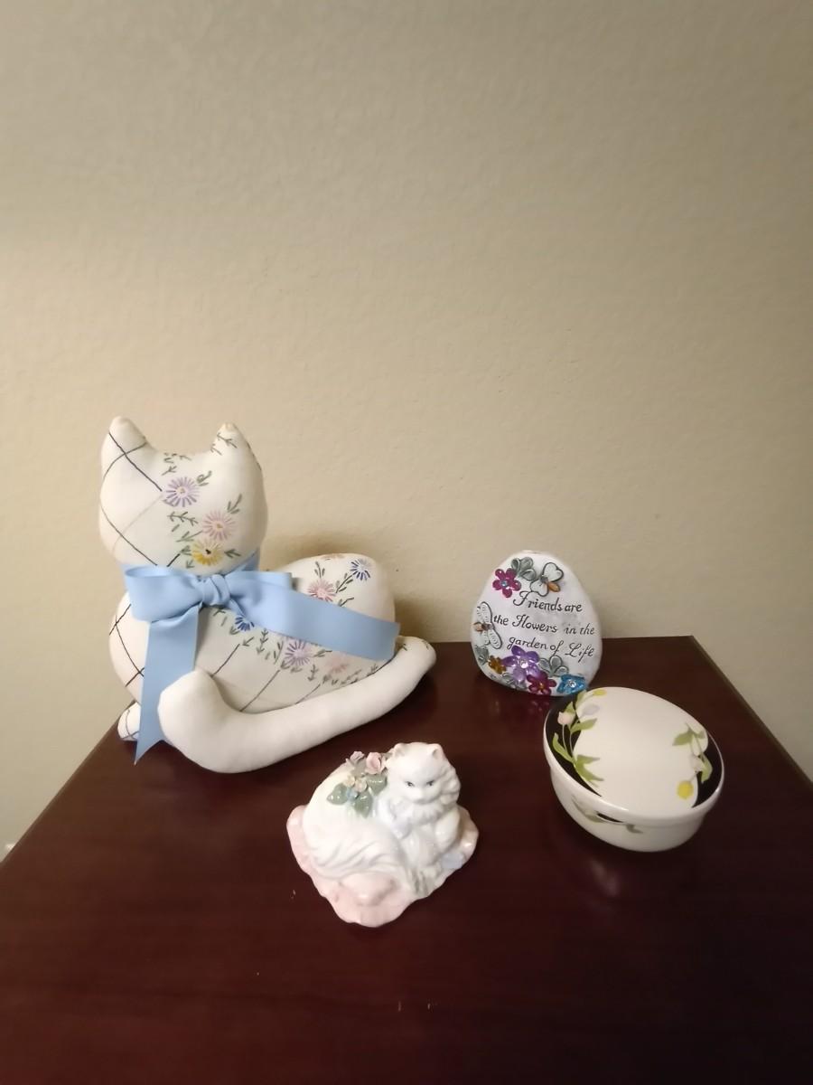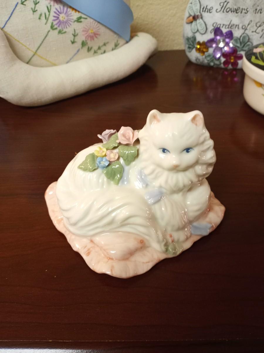 KITTY MUSIC BOX-TRINKET BOX-PRETTY ROCK AND STUFFED KITTY