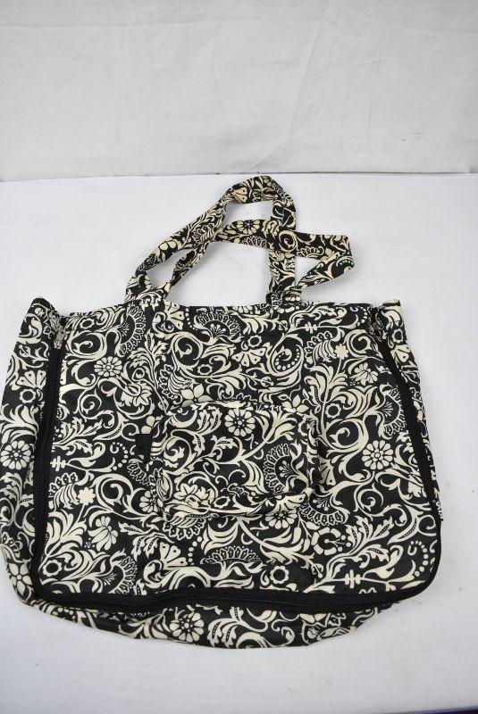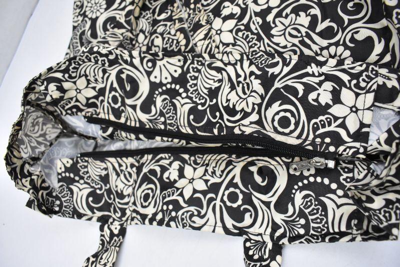 Kiva Convertible & Expandable Tote Bag, Black & Tan. Pockets & Zipper