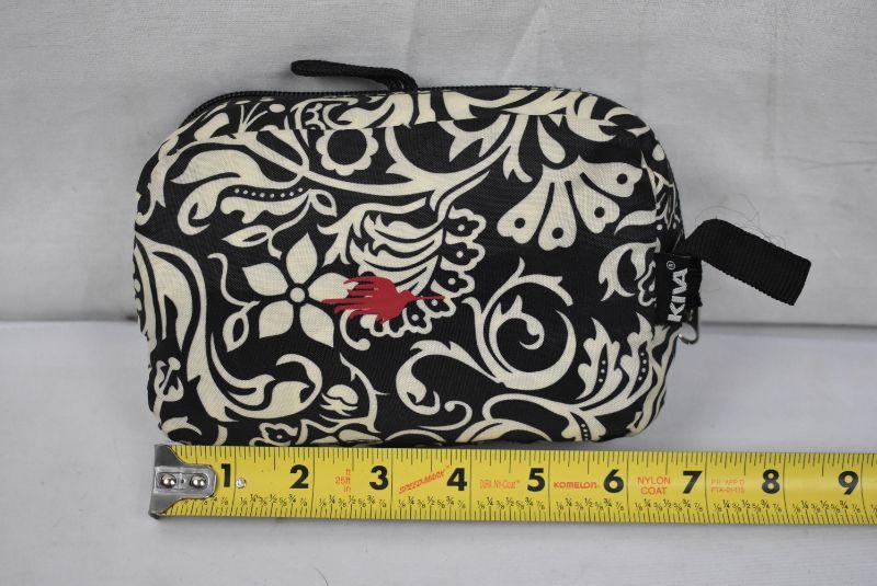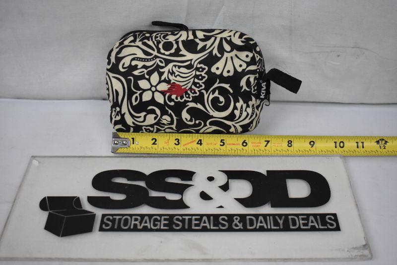 Kiva Convertible & Expandable Tote Bag, Black & Tan with Red Logo. 2 inner pockets, Zipper top