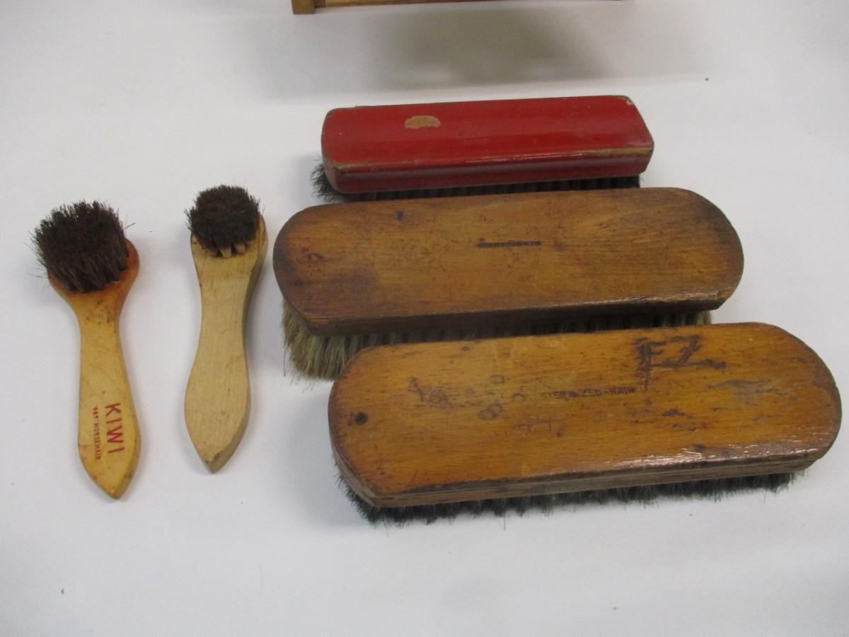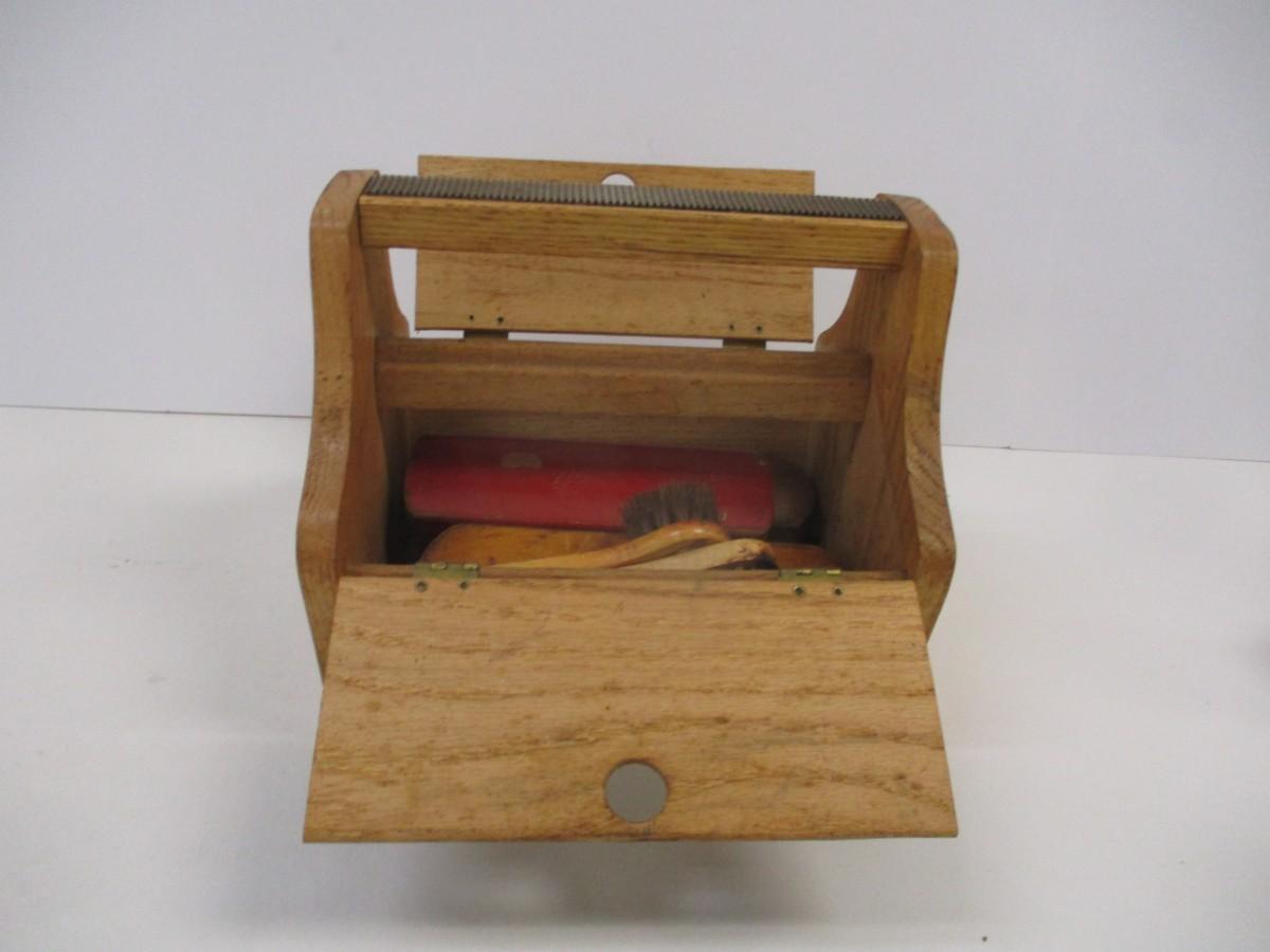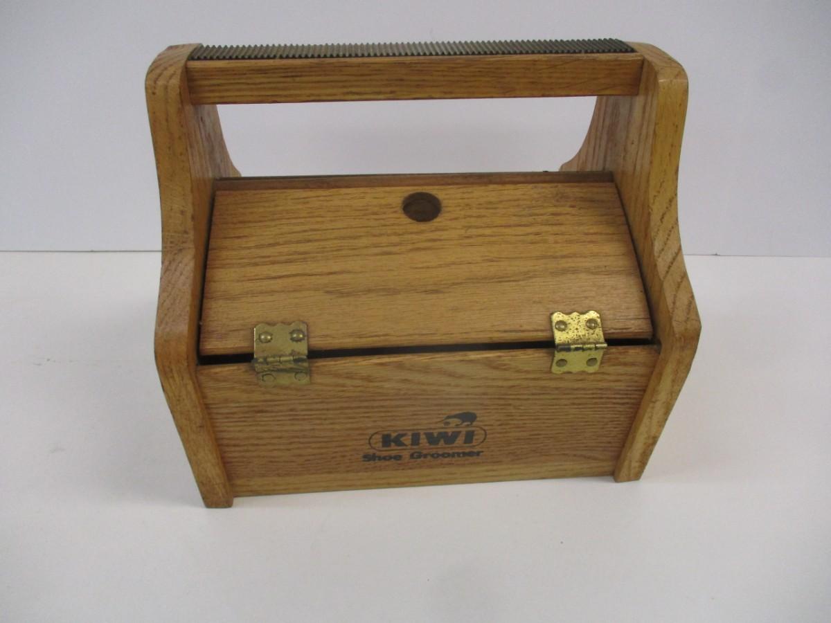 Kiwi Shoe Shine Groomer Wooden Box Foot Rest Polish Solid Wood Made In The USA w/ Brushes