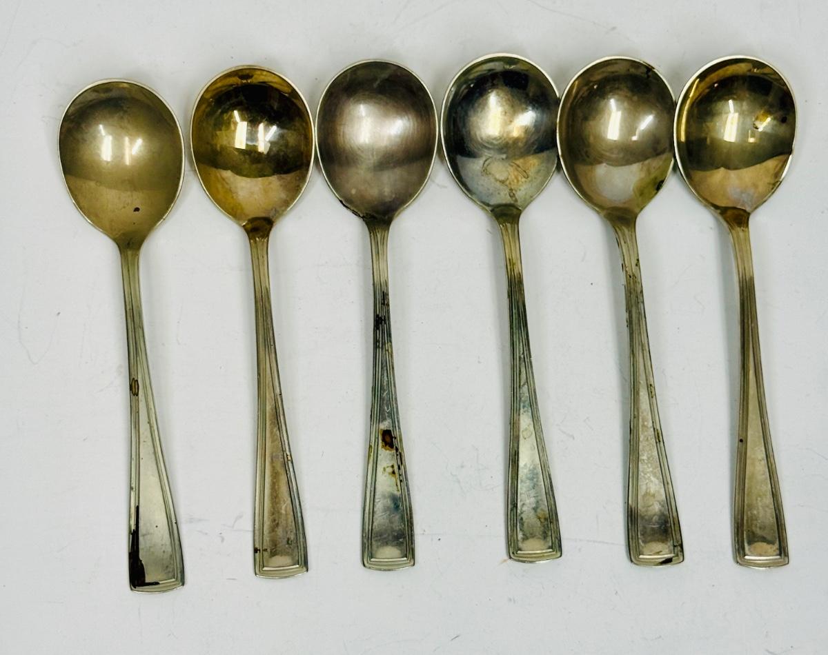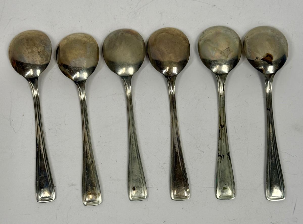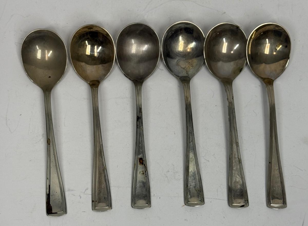 Antique Vintage Alpaca Mexico Silver Soup Spoon Lot, 6 pcs