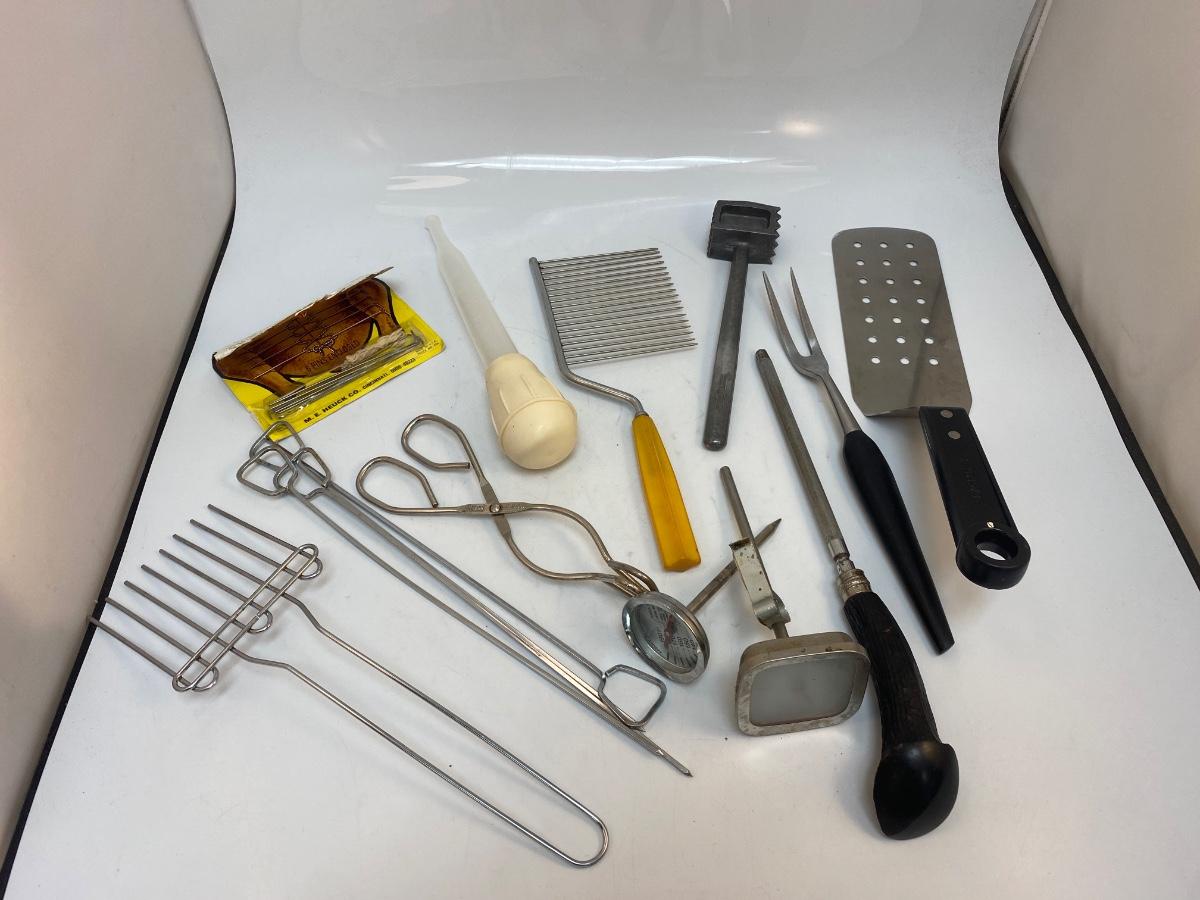 Mixed Lot of Various BBQ Meat Cutting Grilling Slicing Utensils