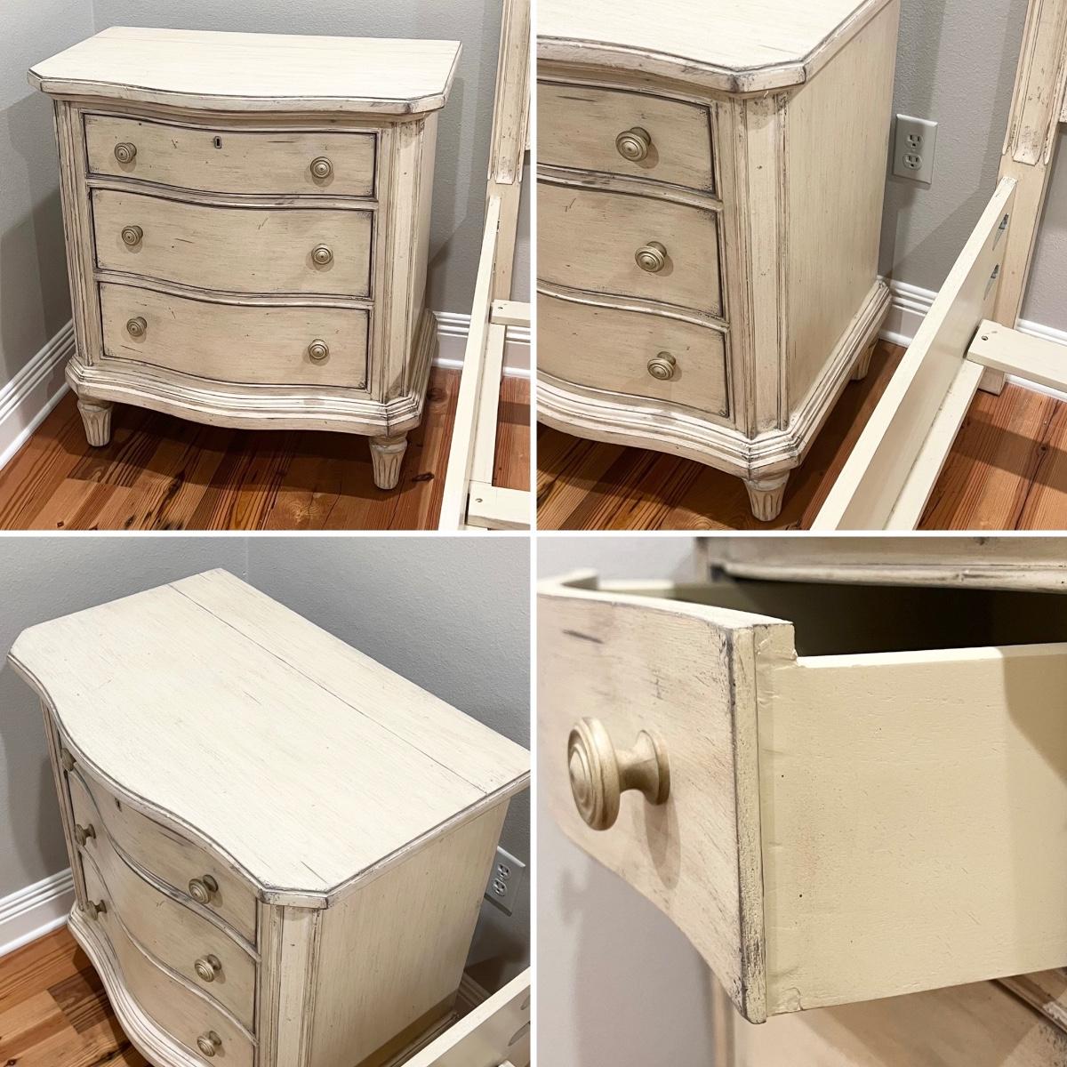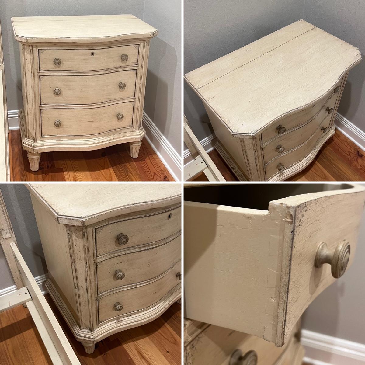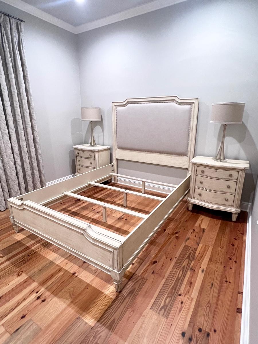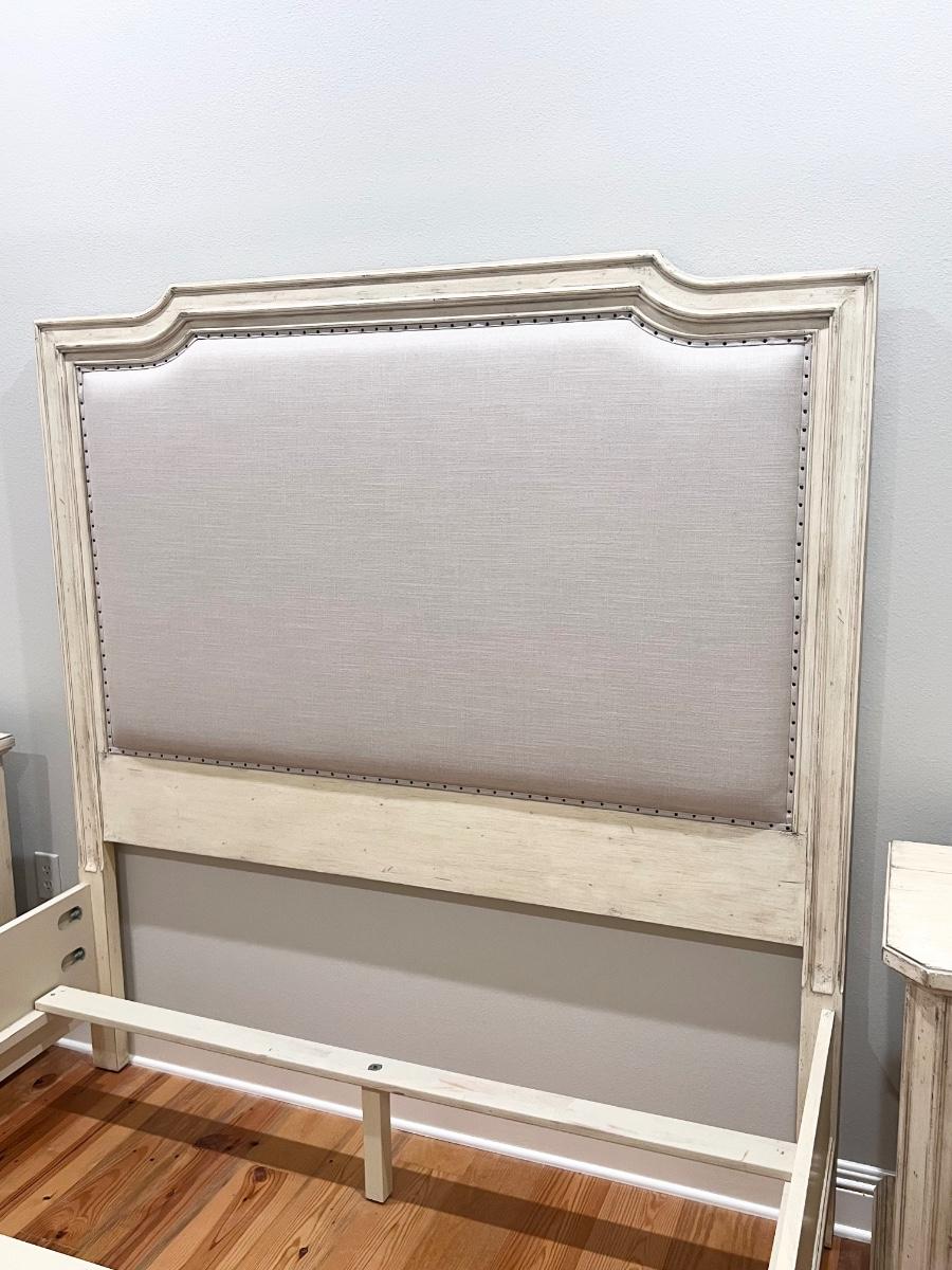 Set includes upholstered queen bed & 2 nightstands ~ All drawers slide easy ~ No other items, mattress or bedding for sale, just the 3-piece set ~ Lamps sold separately ~ Headboard = 67.5” H ~ Nightstands = 31” H x 29” W x 19” D
