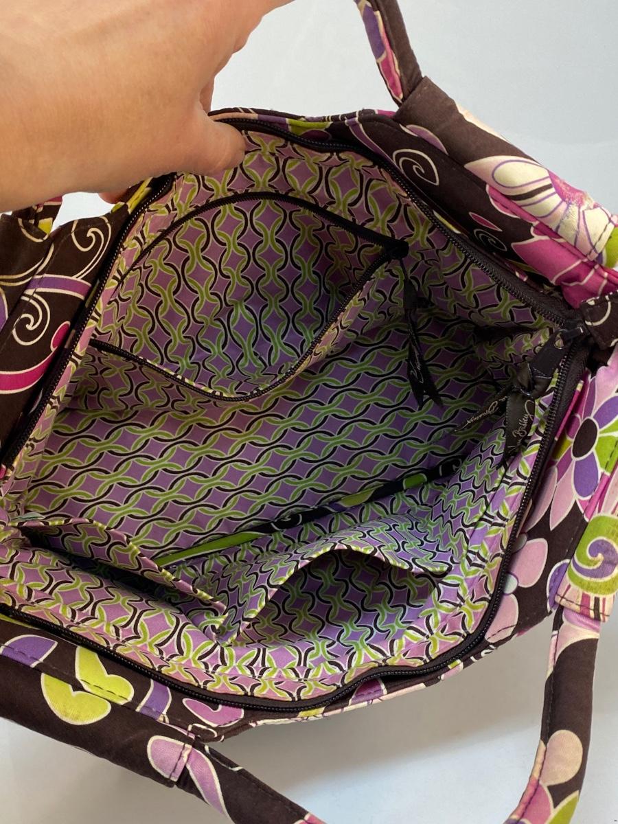 Brown & Purple Floral Vera Bradley Quilted Handbag Purse. In good condition, light signs of use.