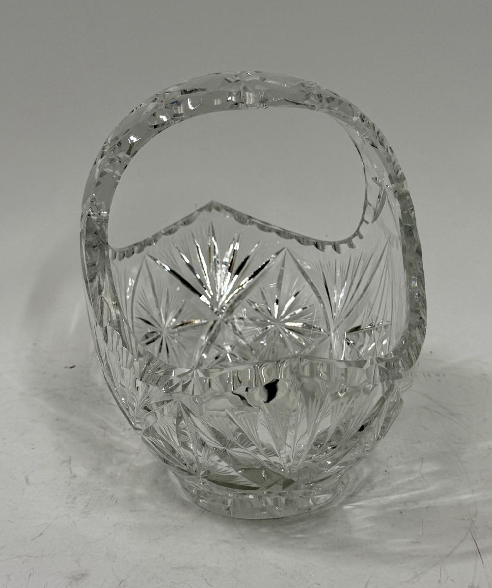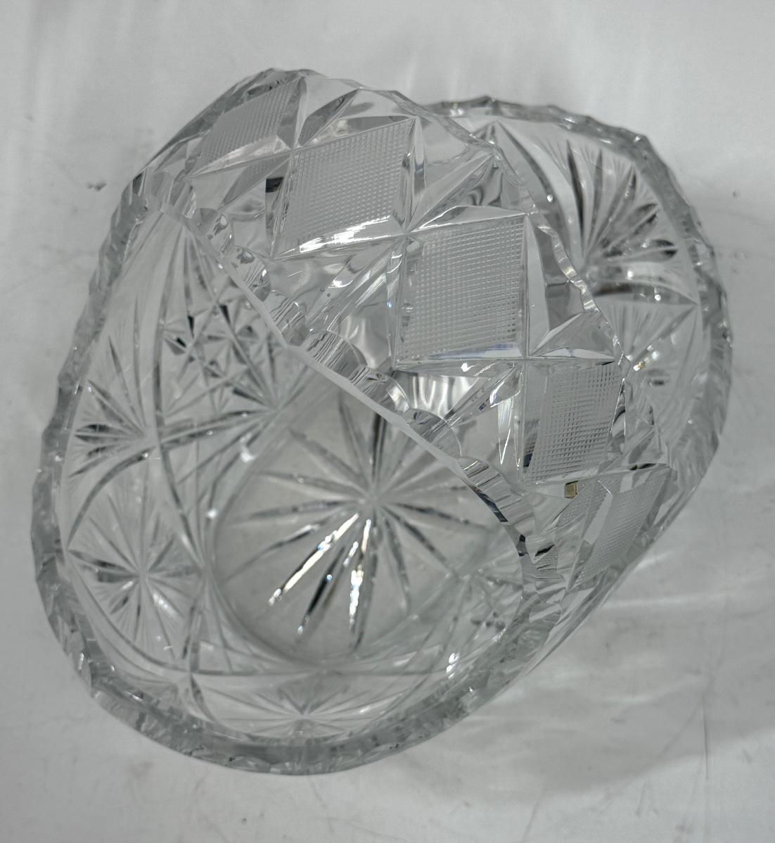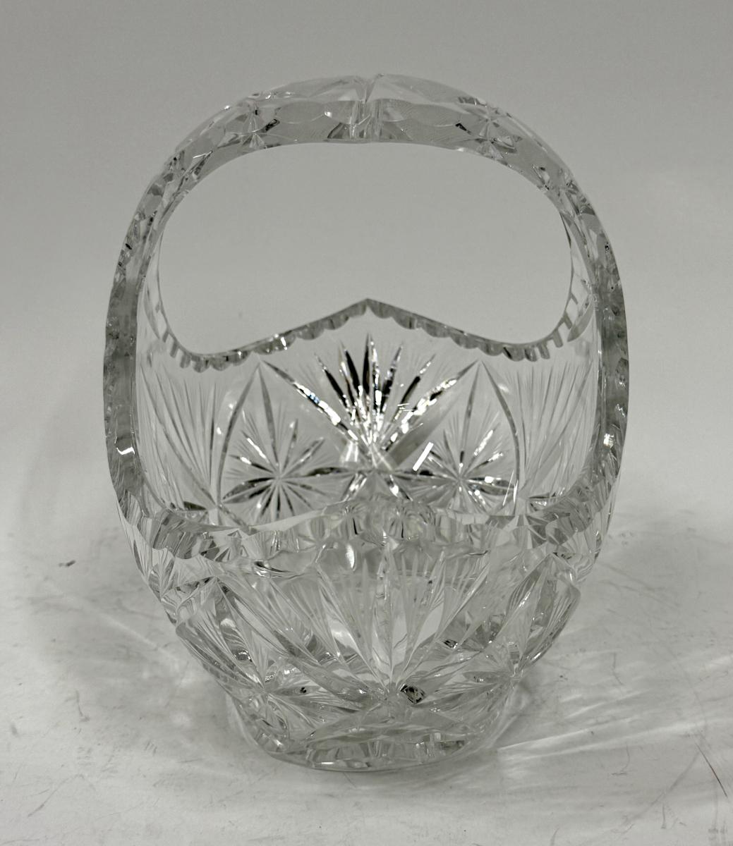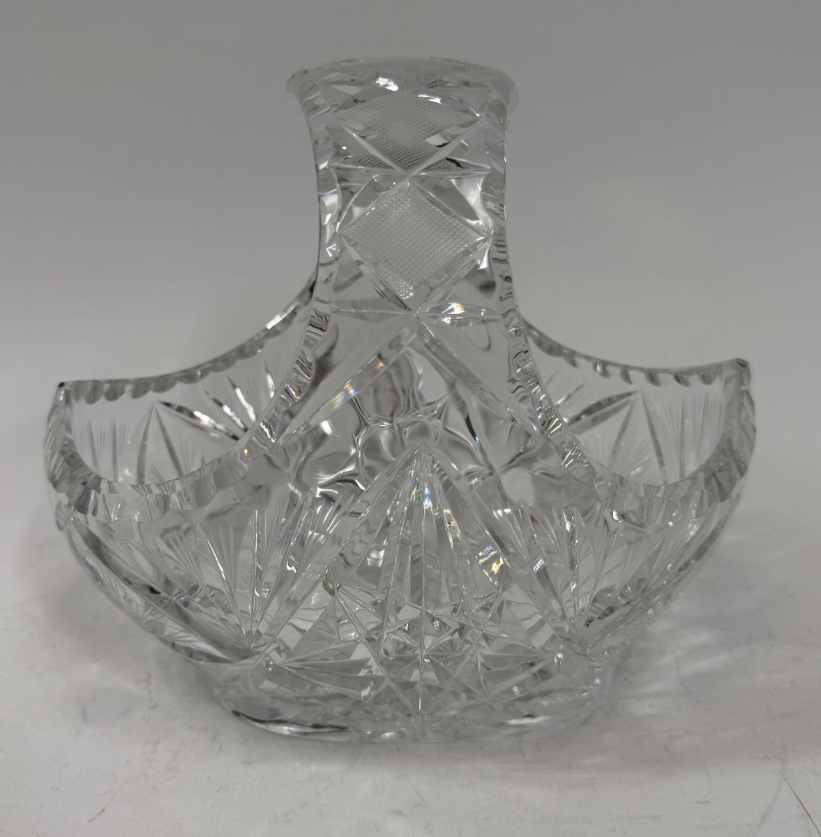 Vintage Clear Lead Crystal Glass Starburst Pinwheel Cut Basket With Handle