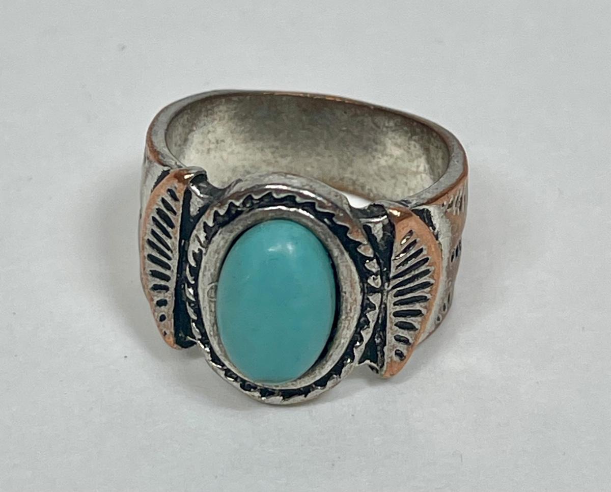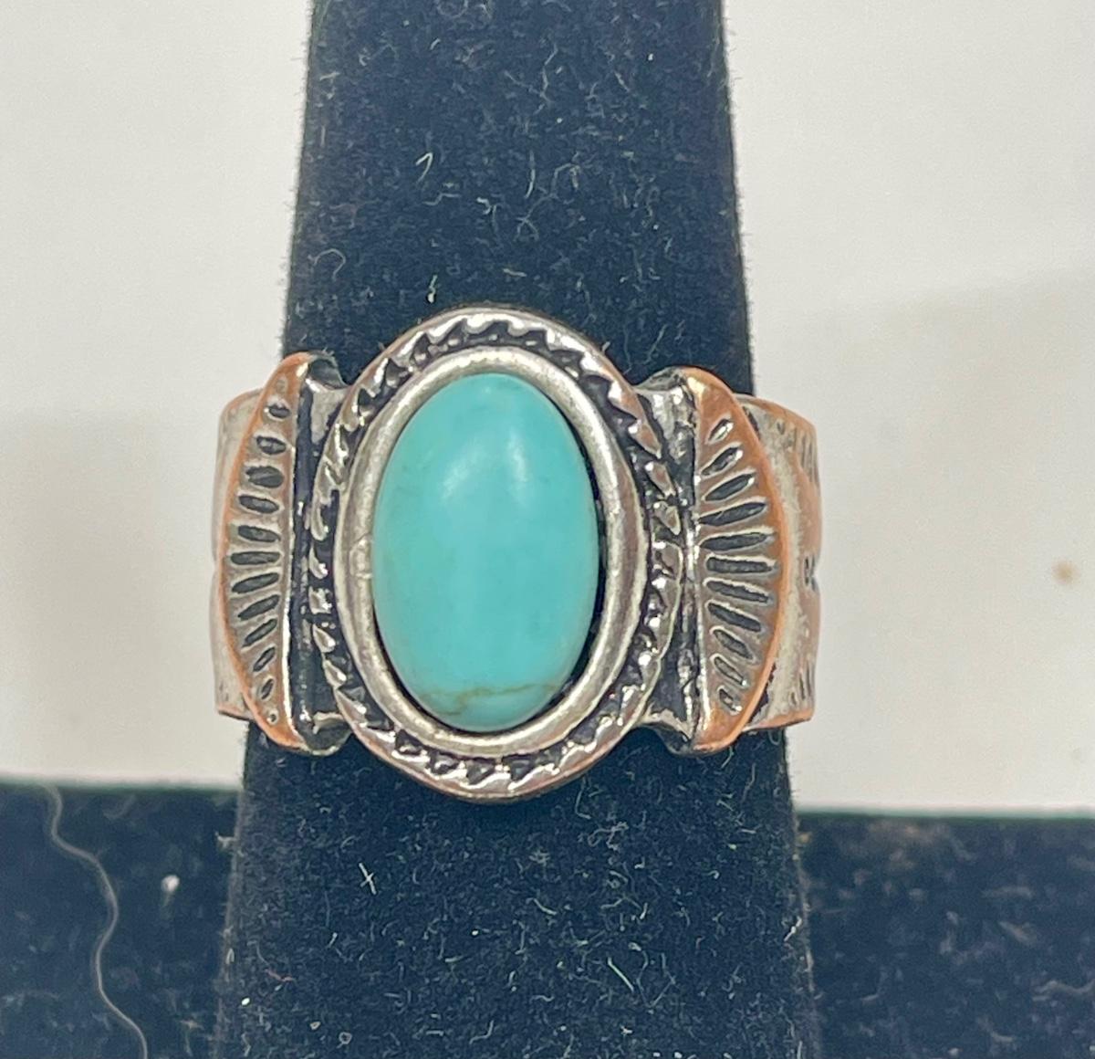 Silver-tone ring w/ faux turquoise