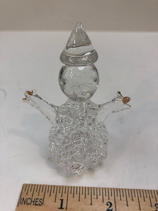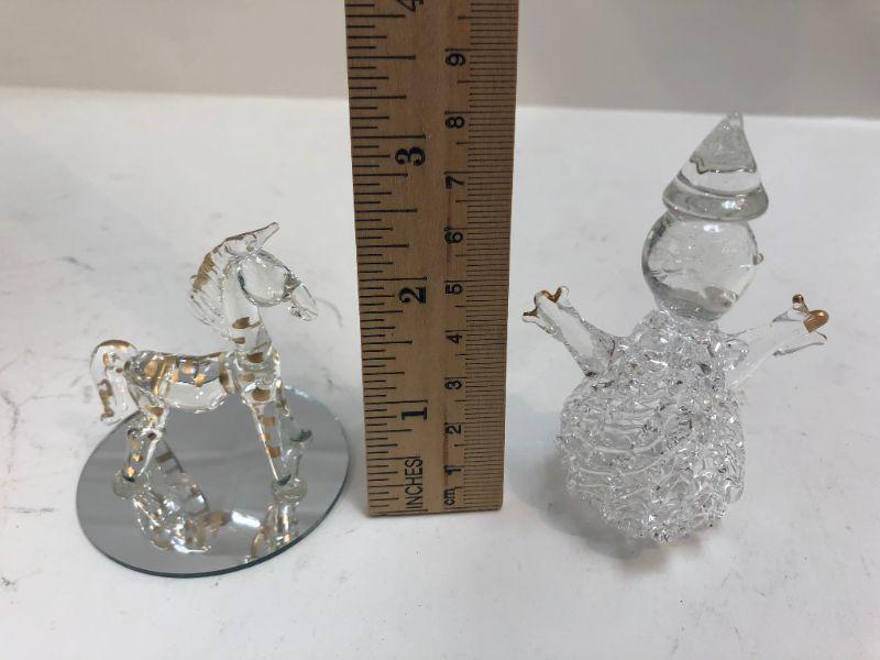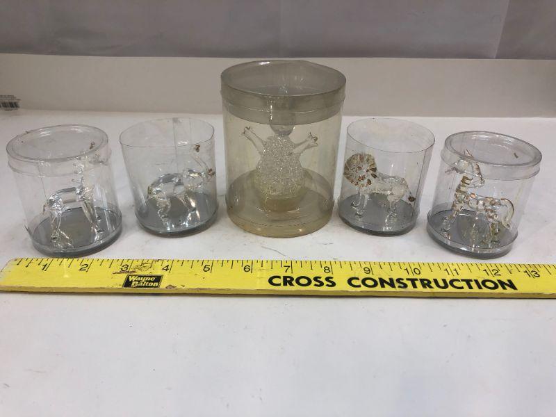 Lot of 5 blown glass miniature animal figurines. In their original packaging. One is a snowman.