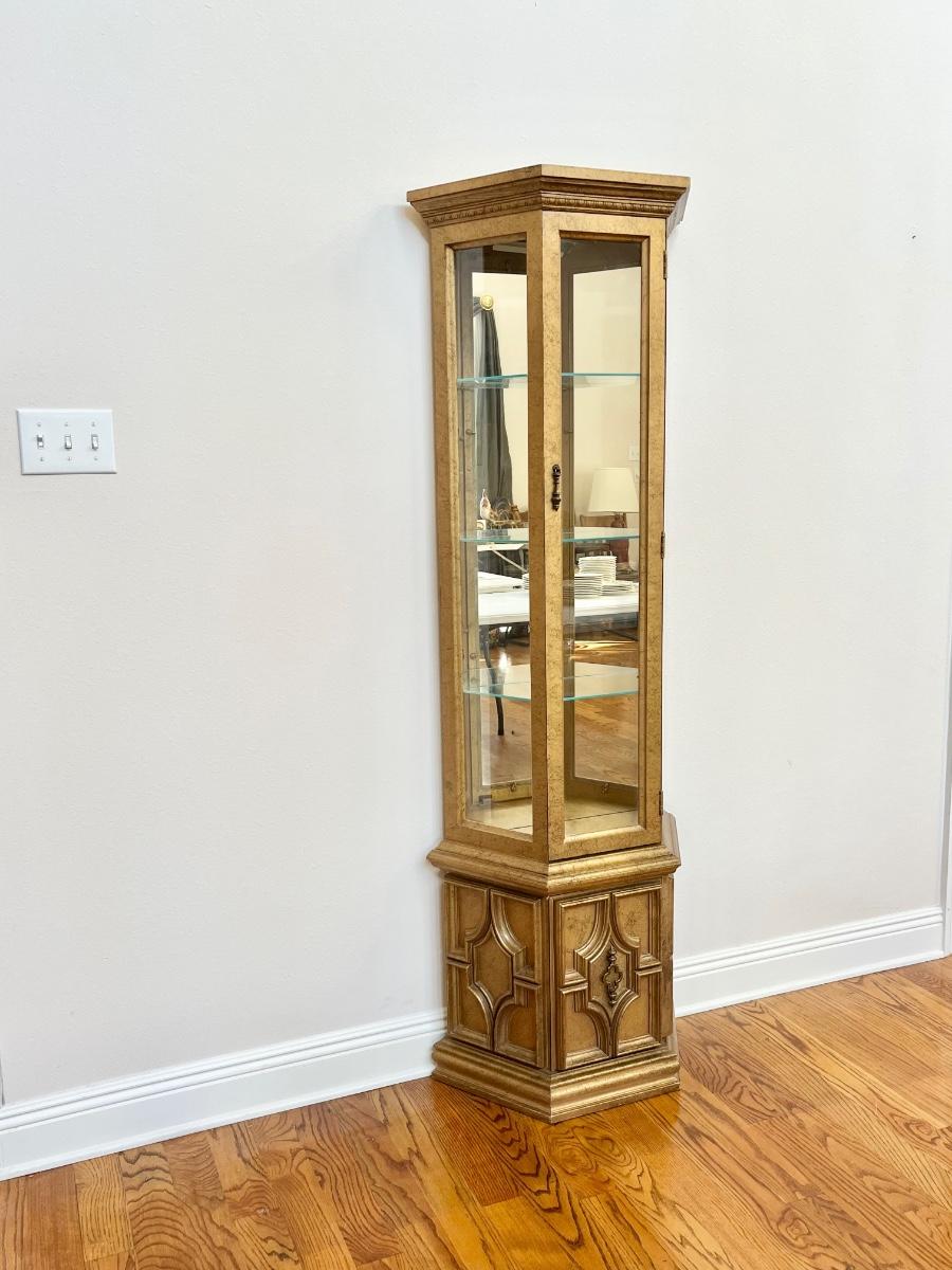 Vintage Gold Antiqued Lighted Mirrored Curio