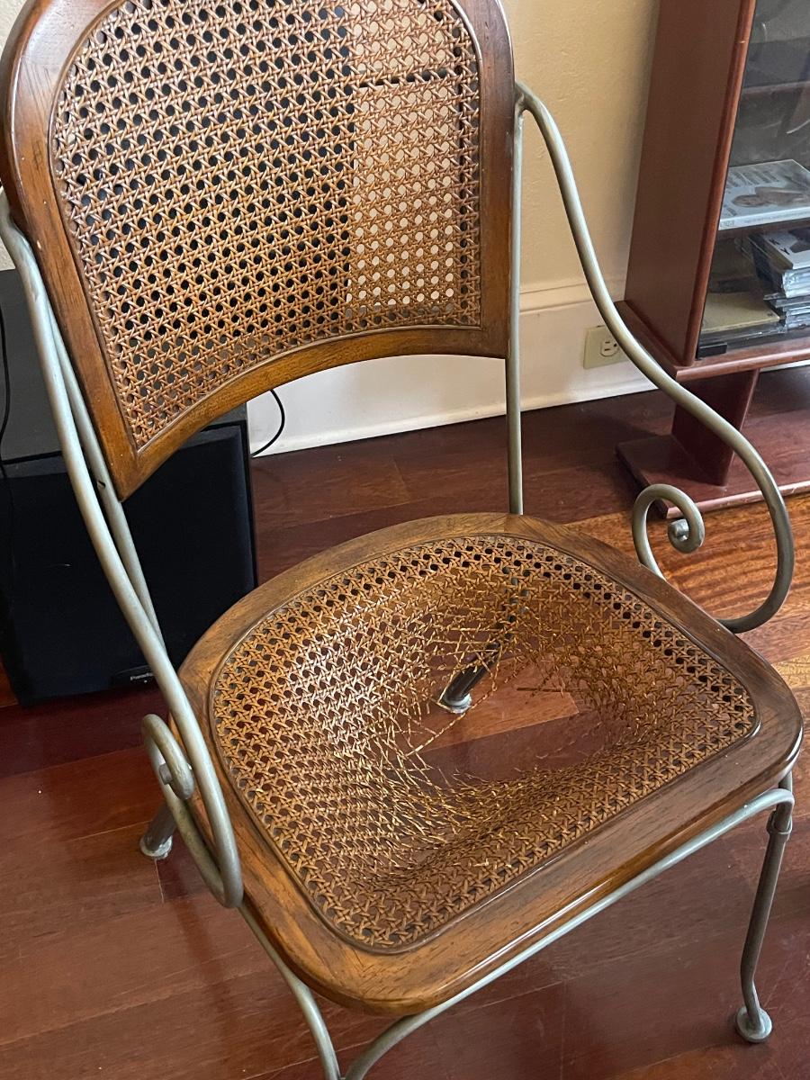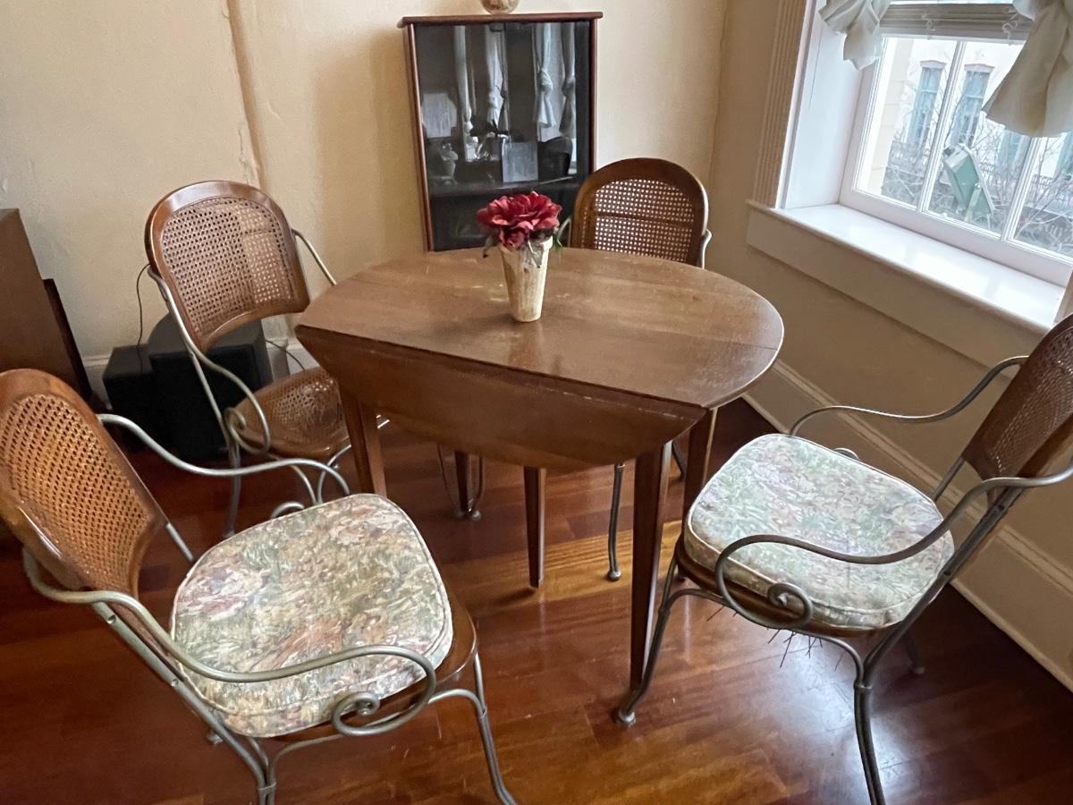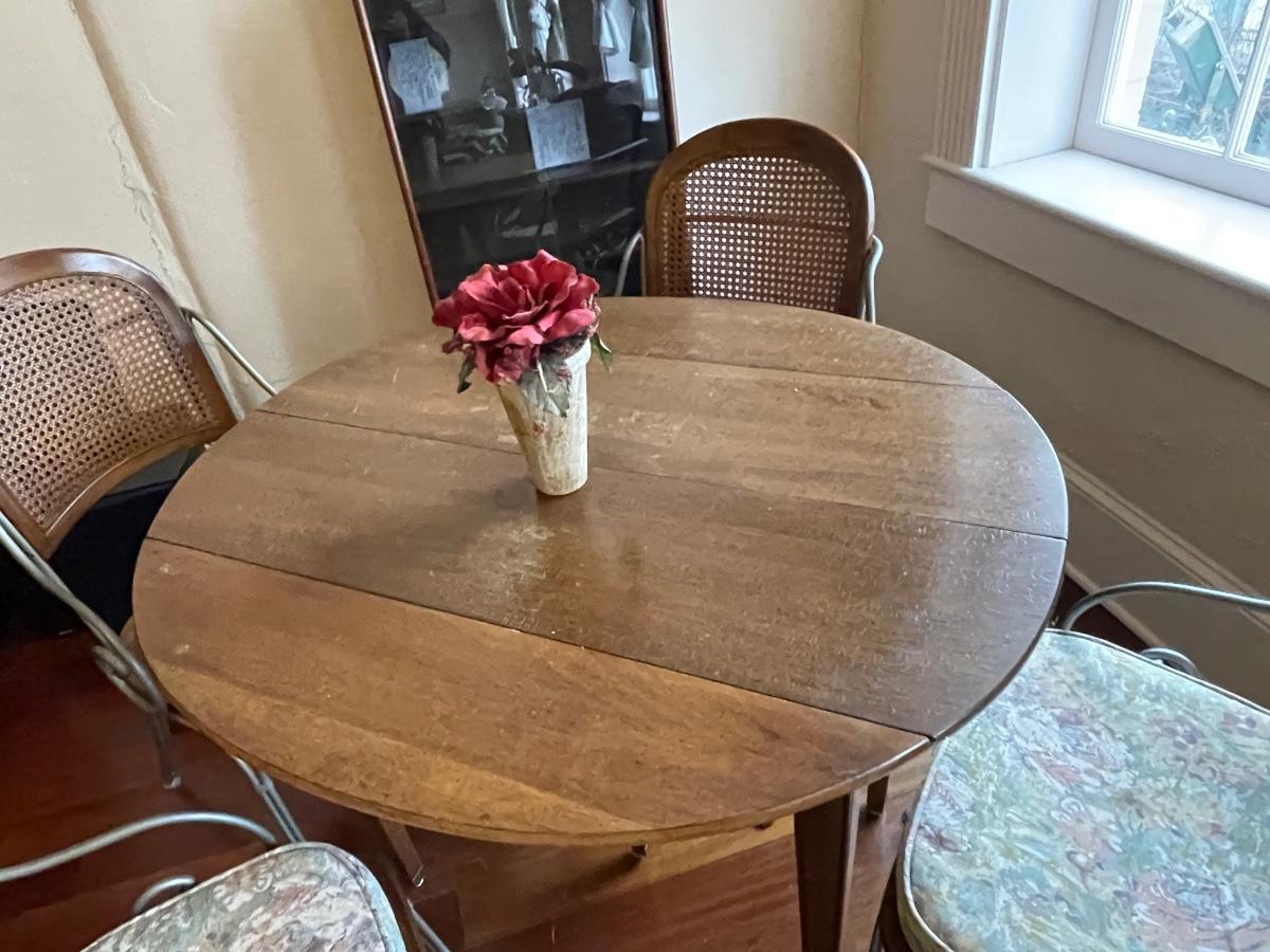 Vintage Fold Down Wood Table with Wicker and Metal Chairs - Project Piece