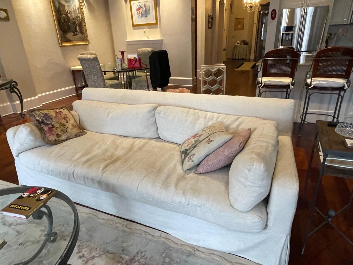 Large Restoration Hardware Comfy Goose Down Couch - Has some wear.