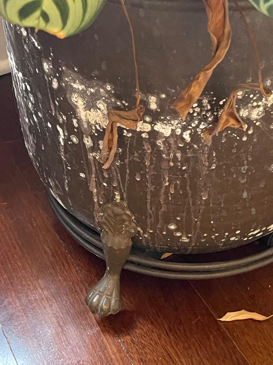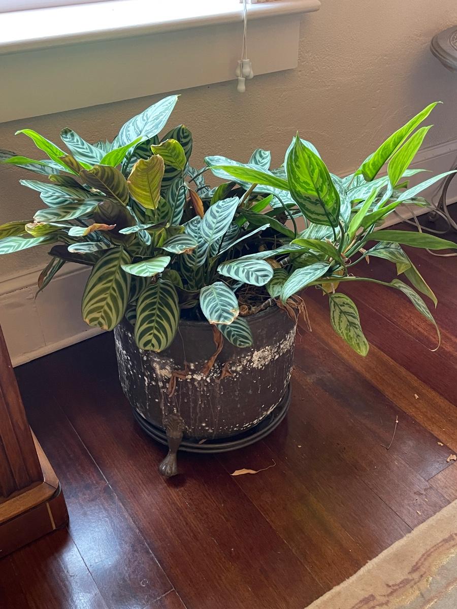 This plant measures 15 x 16. Brass pot needs some cleaning.