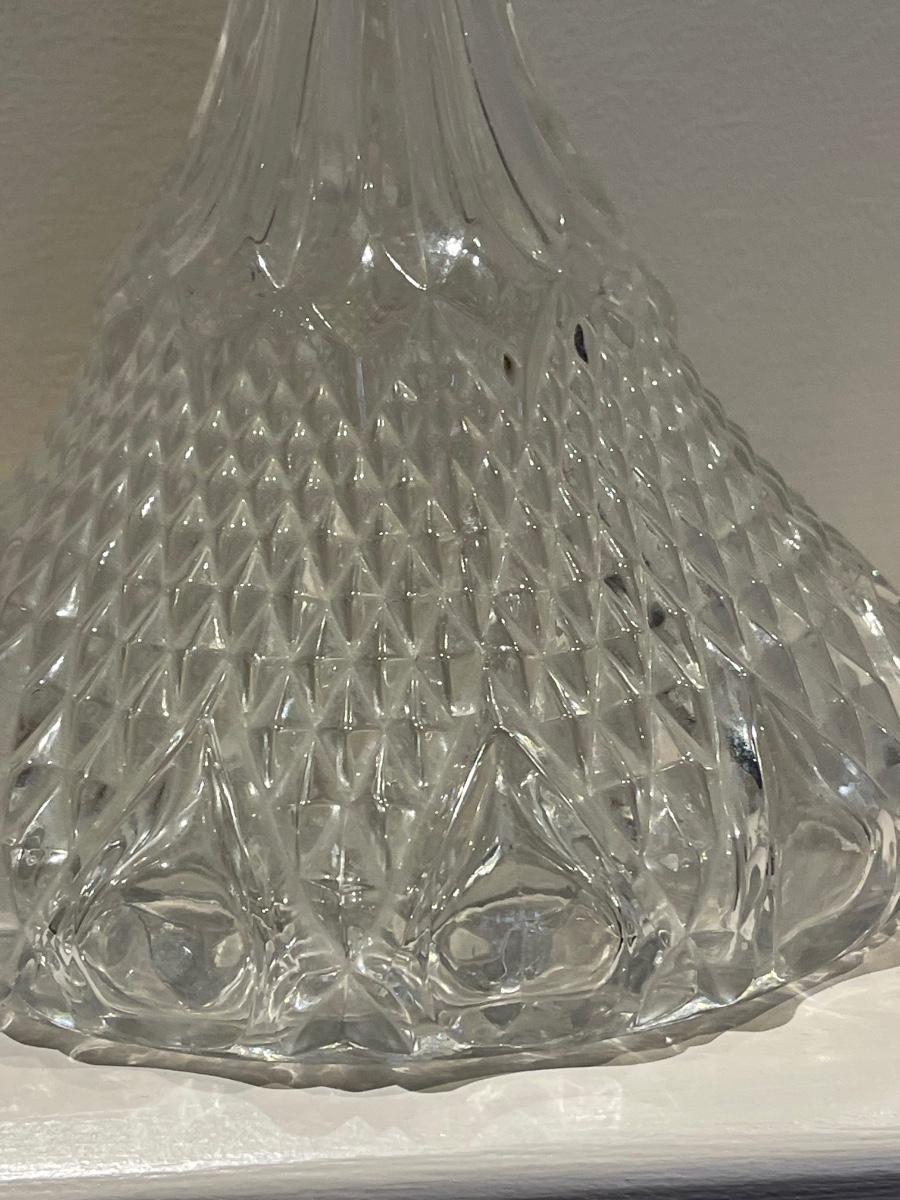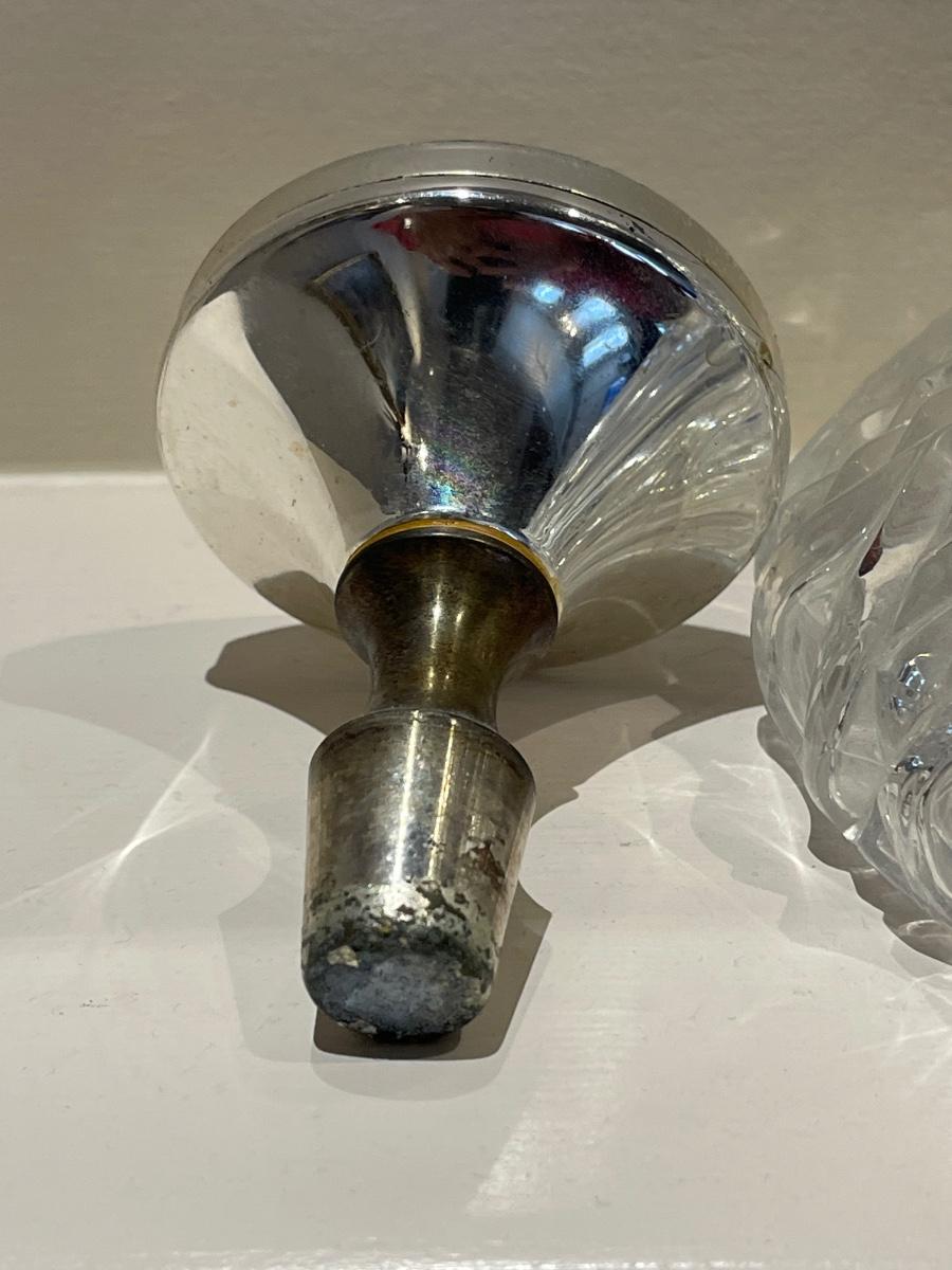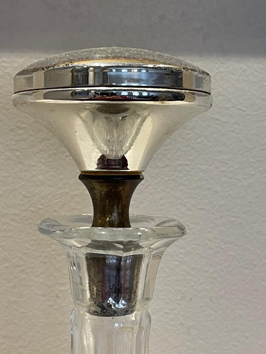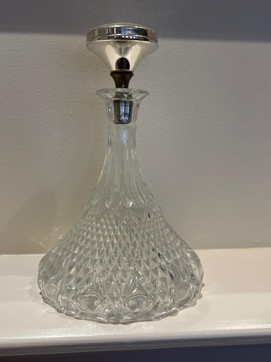 Vintage Diamond Pattern Crystal Decanter with Silver Stopper