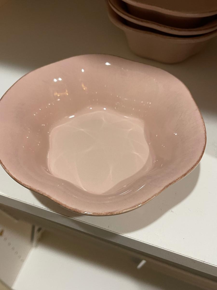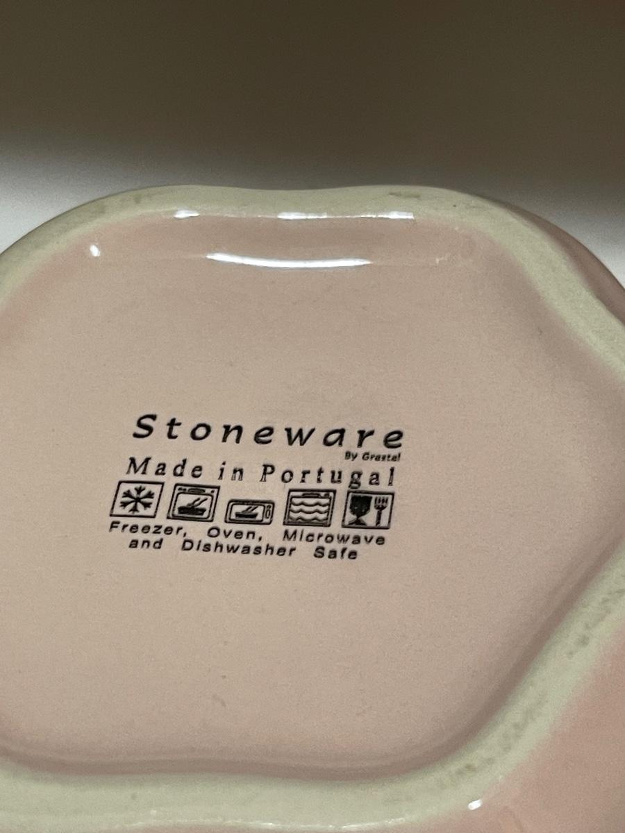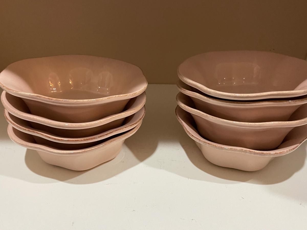 Set of 8 Stoneware Scalloped Cereal Bowls by Grestel - Portugal - Rustic Farmhouse Pink